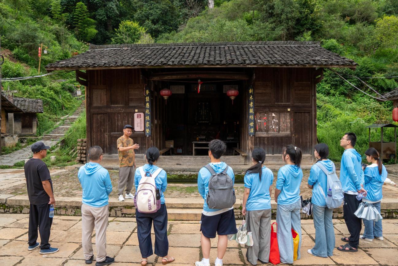 在斑駁的樹影與幽深的巷道間,紅色印記同樣清晰可辨:為方便紅軍在山地行軍作戰(zhàn),毛澤東同志親自參與將尖頂斗笠改良為圓頂斗笠,這頂看似普通的斗笠,既是適應(yīng)戰(zhàn)場(chǎng)的實(shí)用裝備,更凝結(jié)著領(lǐng)袖對(duì)基層實(shí)際需求的深切關(guān)切;革命戰(zhàn)爭年代,丁屋村 74 位客家兒女從這片土地出發(fā),在閩西的崇山峻嶺間穿梭,默默傳遞情報(bào)、支援前線,用熱血書寫忠誠。漫步古村,實(shí)踐隊(duì)深切體悟到客家先民將生存智慧與革命信念熔鑄一體的力量,這股力量激勵(lì)著我們學(xué)習(xí)客家人的務(wù)實(shí)堅(jiān)韌,永遠(yuǎn)銘記那份沉甸甸的紅色擔(dān)當(dāng)。