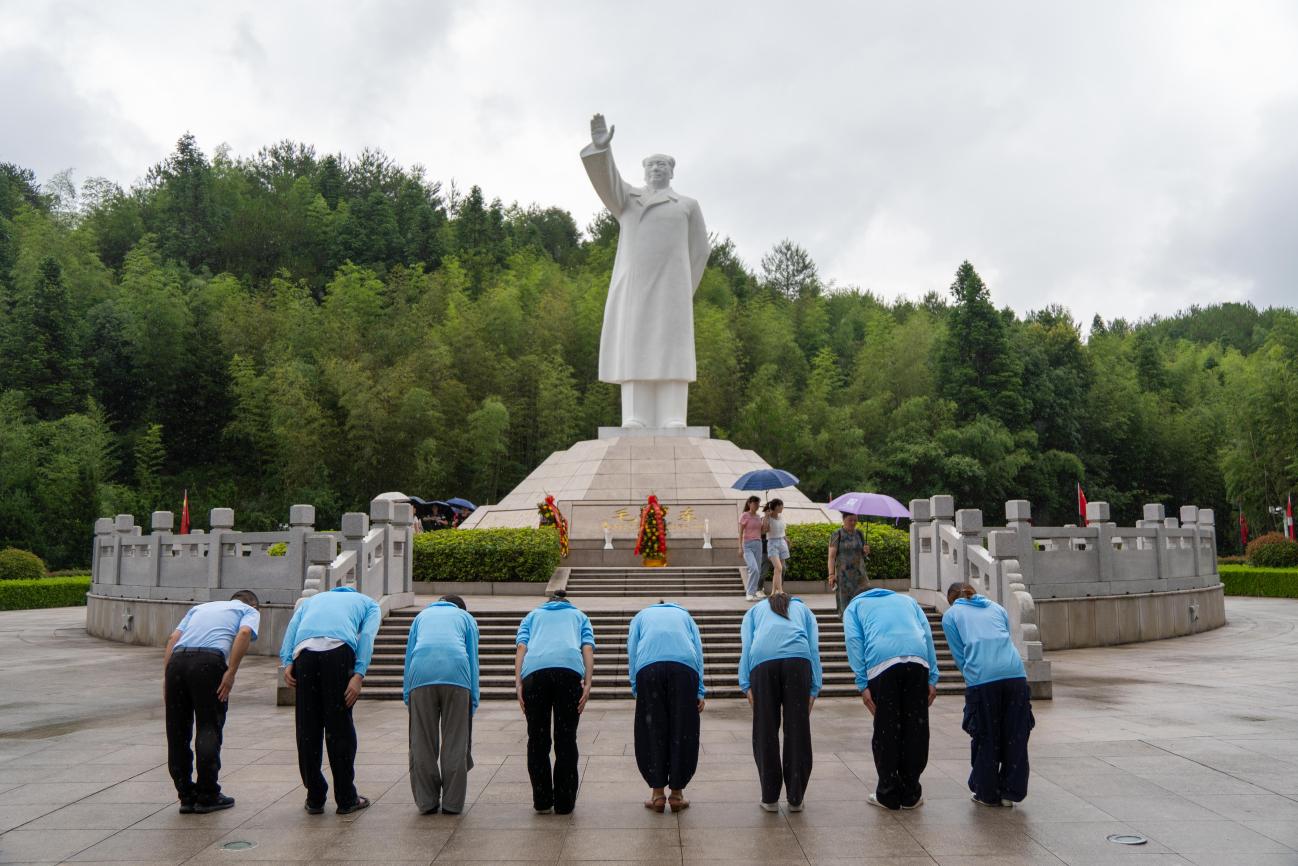 圖11:實(shí)踐團(tuán)師生向毛澤東雕像鞠躬行禮