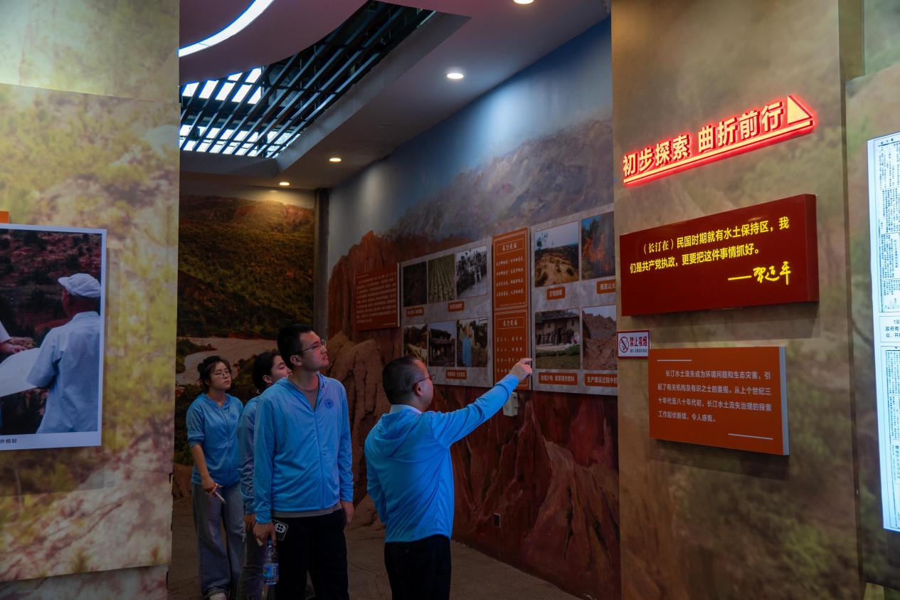 圖1:實(shí)踐團(tuán)成員在水土保持園內(nèi)追憶水土流失治理史
