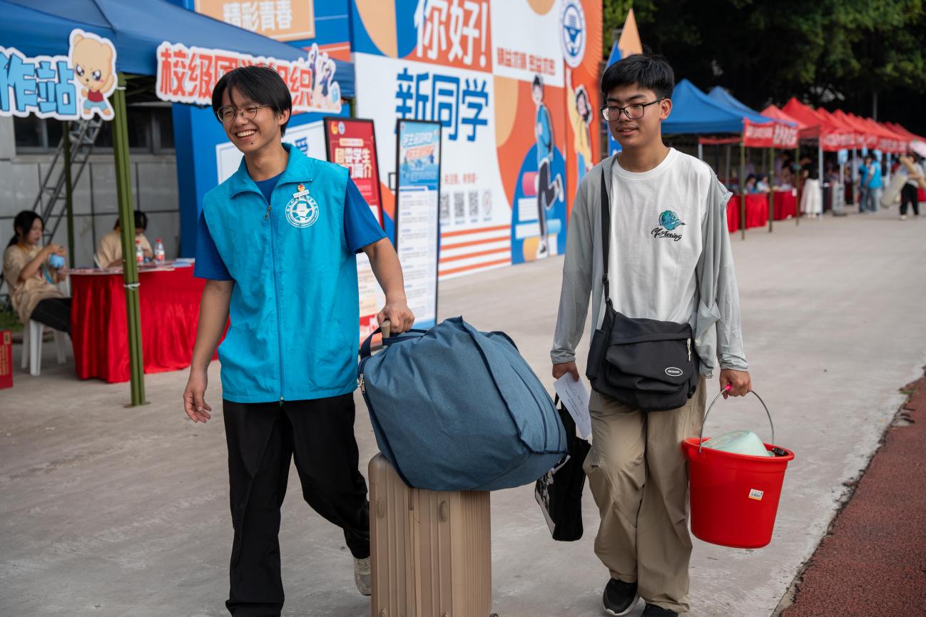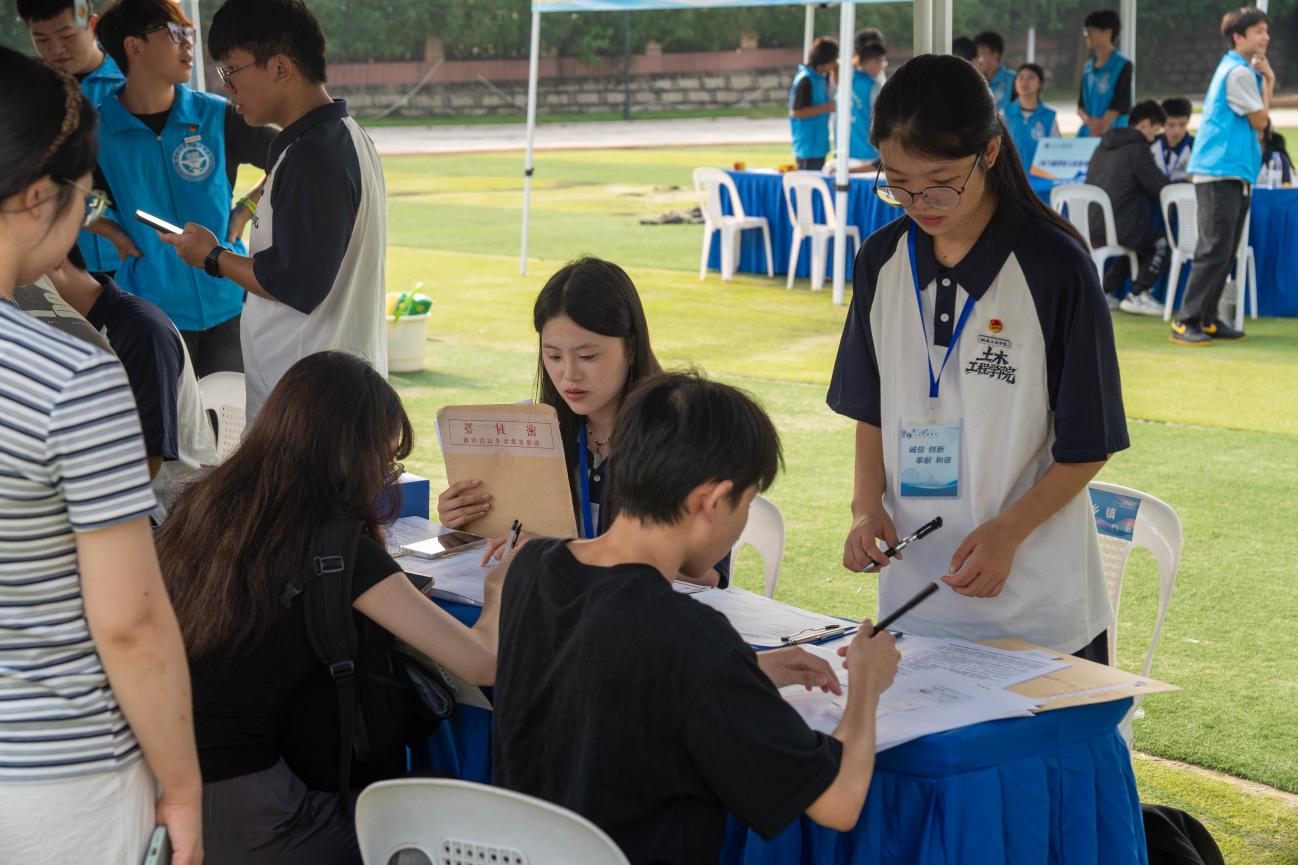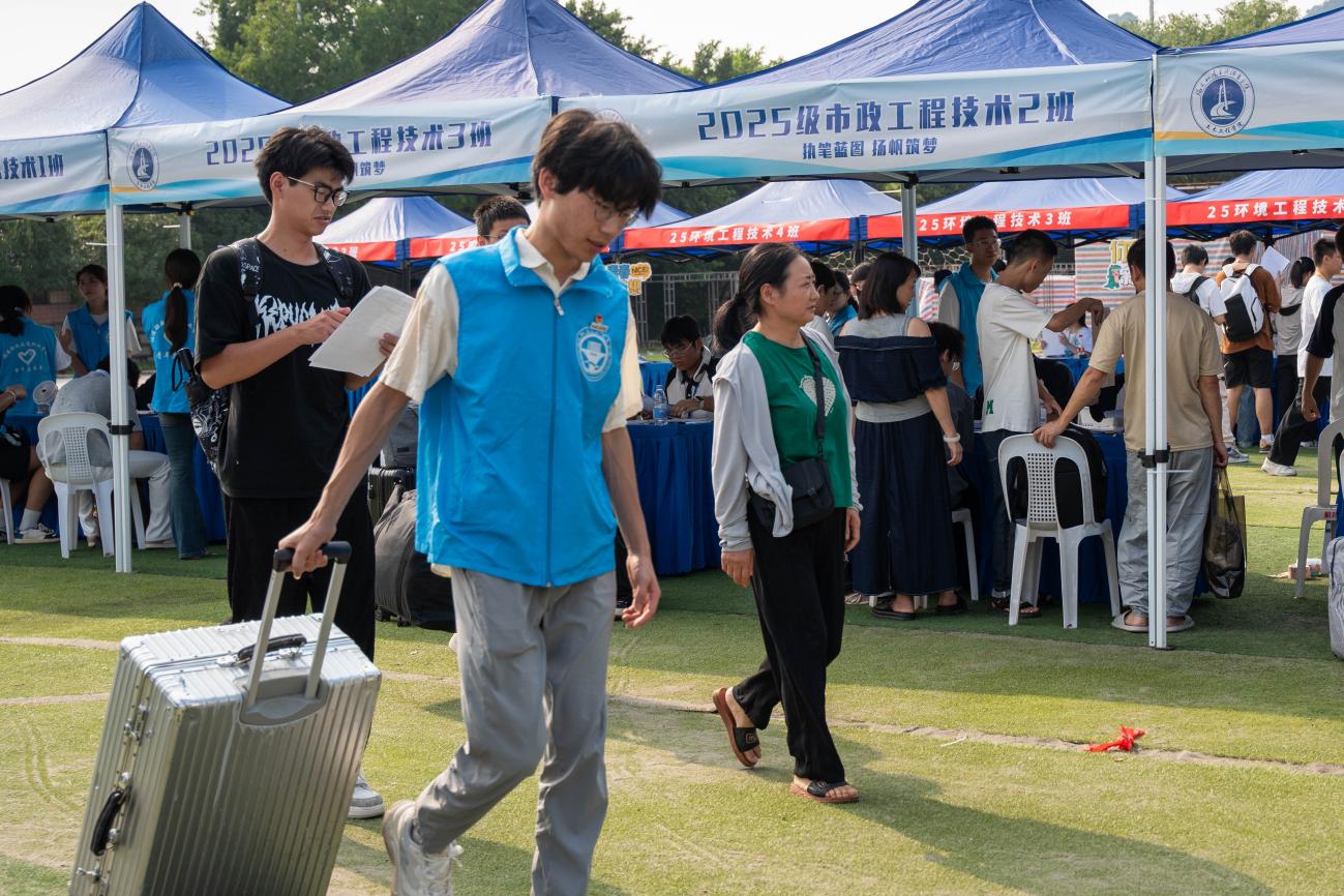 為保障迎新平穩(wěn)有序,學(xué)院提前啟動全方位籌備:精心研討打磨福船園飛揚(yáng)田徑場的場地規(guī)劃、功能分區(qū),反復(fù)推演并優(yōu)化新生報到流程,力求為2025級新生打造高效暖心的入學(xué)體驗(yàn)。迎新當(dāng)天,校園彩旗招展,迎新橫幅與指引牌清晰醒目。志愿者身著統(tǒng)一服裝早早到位,熱情地為新生們提供引導(dǎo)服務(wù),搬運(yùn)行李,從信息登記、材料核驗(yàn)到護(hù)送至宿舍全程陪伴,用貼心服務(wù)化解新生陌生感,讓他們初入校園便感受家的溫暖。
