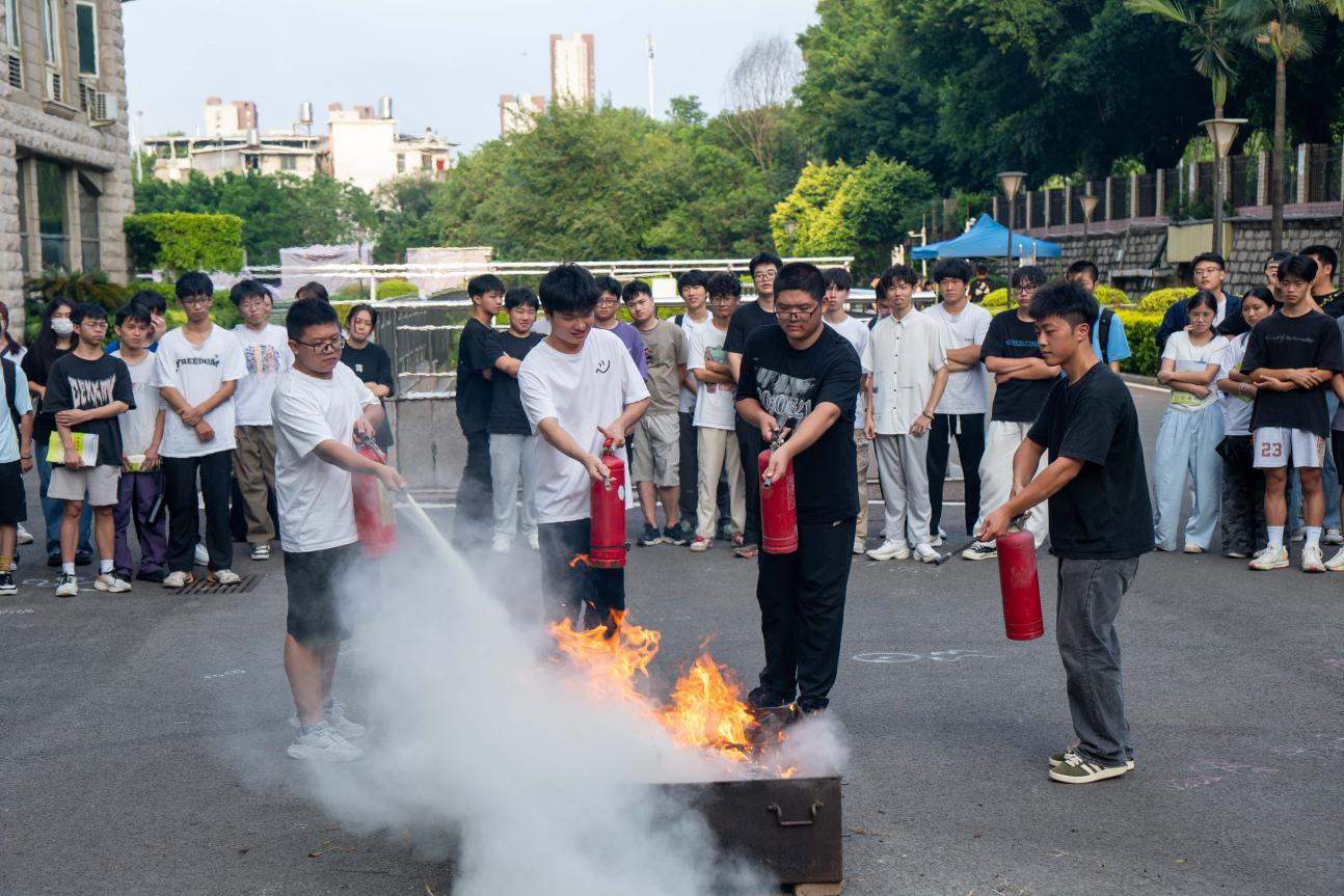 隨著警報聲響起,活動第二部分實戰(zhàn)演練拉開序幕,同學(xué)們配合引導(dǎo)人員按照預(yù)設(shè)路線有序從消防通道撤離到創(chuàng)新樓外安全地點,演練整體過程有條不紊。隨后,工作人員向大家演示了消防器材的正確用法,同學(xué)們積極參與其中,通過實踐掌握滅火器的基本用法,將安全意識內(nèi)化為本能反應(yīng),構(gòu)建“消防始于行,安全植于心”的校園安全氛圍。