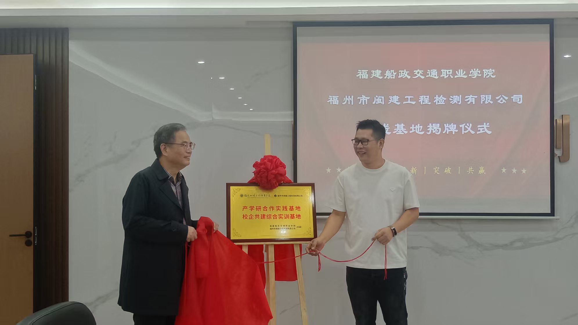 隨后,土木學(xué)院書記高杰與閩建檢測總經(jīng)理吳文岳共同為“校企共建綜合實(shí)訓(xùn)基地”揭牌。