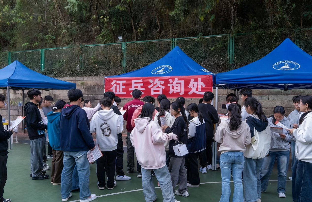 活動現(xiàn)場,志愿者詳細介紹征兵條件、應征流程、優(yōu)待政策、職業(yè)發(fā)展等內(nèi)容,為有意向入伍的學生提供全面的信息支持,有效激發(fā)他們應征入伍、獻身國防的熱情,營造“參軍報國,無上光榮”的征兵宣傳氛圍。