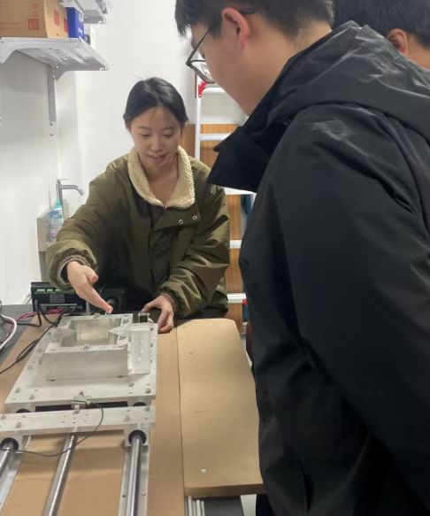 講解結(jié)束后,江景杉帶領(lǐng)大學(xué)生科研項(xiàng)目團(tuán)隊(duì)成員嚴(yán)格按照規(guī)范流程進(jìn)行實(shí)操,完成土樣制備、儀器校驗(yàn)、填土壓實(shí)、拉伸觀測(cè)及數(shù)據(jù)記錄、樣品留存與設(shè)備清理等系列實(shí)驗(yàn)操作。