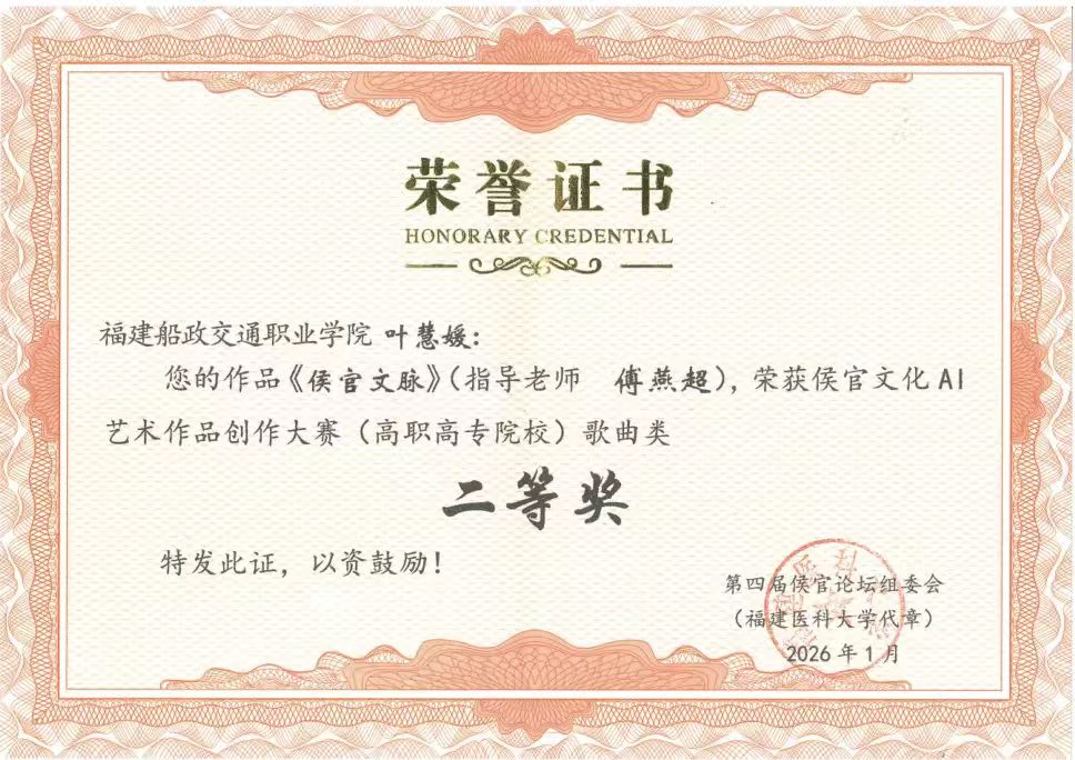 近日,由福建省教育廳指導(dǎo)、福建醫(yī)科大學(xué)主辦的侯官文化AI藝術(shù)作品創(chuàng)作大賽公布獲獎名單。土木工程學(xué)院選送的2件作品脫穎而出,在視頻類及歌曲類賽道中獲二等獎2項。