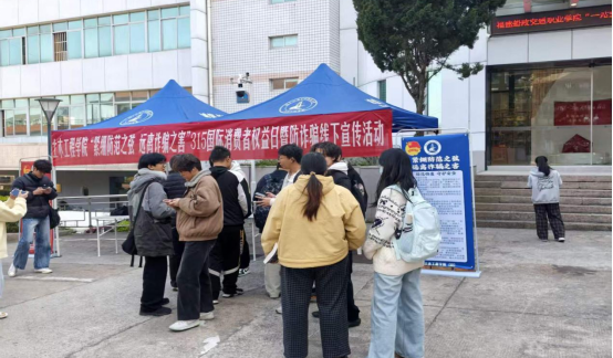 活動(dòng)現(xiàn)場,工作人員通過宣傳展板、懸掛宣傳橫幅等形式傳遞消費(fèi)維權(quán)、反詐防騙、網(wǎng)絡(luò)安全、防范陷阱等相關(guān)知識(shí),積極引導(dǎo)同學(xué)們樹立安全防范意識(shí),守護(hù)自身健康以及財(cái)產(chǎn)安全。