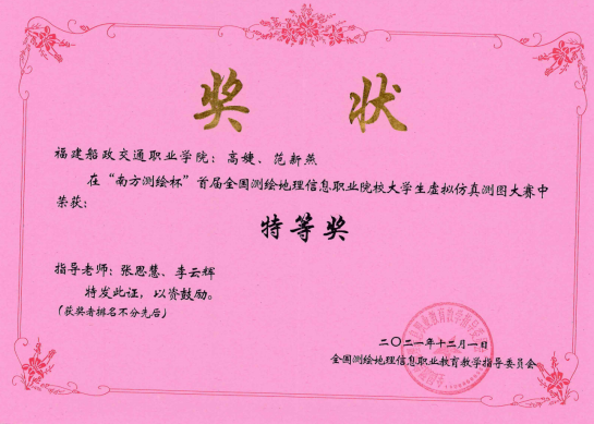 與福州市勘測院、碩威工程科技股份有限公司共建實訓基地,每年定向接收數(shù)十名實習生開展崗位實習;與福建省衛(wèi)星數(shù)據(jù)開發(fā)有限公司、南方測繪公司深化技術(shù)服務合作,全面提升師生專業(yè)技能與科研能力;與福建金創(chuàng)利信息科技發(fā)展股份有限公司開展現(xiàn)場工程師人才培養(yǎng)改革項目與教育部供需對接就業(yè)育人項目,將工匠精神與數(shù)字技能深度融合,重點培育學生運用智能化測繪技術(shù)攻克現(xiàn)場難題、優(yōu)化作業(yè)流程的實戰(zhàn)能力,助力學生成長為精操作、懂工藝、會管理、善協(xié)作的新時代現(xiàn)場工程師。