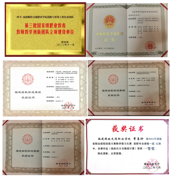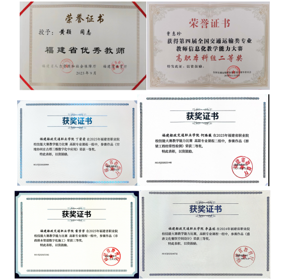 依托國-省-校級科研平臺體系,在教科研上取得豐碩成果。組建多專業(yè)、多技術集成的科研團隊,在交通基礎設施安全運維、智慧檢測監(jiān)測、無人機 應用、綠色新材料等領域,開展橫縱向科研項目300余項,獲得專利80余件,出版專著2部,編制標準和指南15部,獲福建省科技進步獎2項。連續(xù)6年受福建高速集團委托,完成全省4.5萬公里全路段病害數據處理。受省住建廳委托成立福建省鄉(xiāng)村振興服務中心,開展鄉(xiāng)村工匠培訓、古厝保護、農村公路拓寬、安全治理等幫扶指導和公益性技術支援,打造服務鄉(xiāng)村振興示范樣板;將道橋預防性養(yǎng)護、智慧運維等科研成果融入專業(yè)教育,建成道路與橋梁工程技術專業(yè)省級專業(yè)教學資源庫、省級精品課程20門、出版教材20余部,其中國家規(guī)劃教材6部。堅持“以賽促學、以賽促教、以賽促改”指導學生參加各類競賽,獲得國家級獎項34項、省級獎項75項。深化“崗課賽證”融通,探索“崗課”銜接、“課賽”聯通、“課證”融合機制,實現“崗課賽證”融入專業(yè)人才培養(yǎng)全過程。