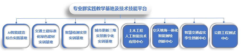 交通土建專業(yè)群實訓基地是國家高等職業(yè)院校創(chuàng)新行動計劃校企共建生產性實訓基地,獲批第48屆世界技能大賽數字建造項目中國集訓基地,入選福建省職業(yè)院校高水平專業(yè)化產教融合實訓基地。精準對接公路行業(yè)數字化轉型升級核心需求,打造智慧公路職教應用大模型,全面驅動實訓基地數智化升級建設。與省內外近70余家規(guī)上企業(yè)合作共建涵蓋智能建造、無人機智能巡檢、智慧檢測監(jiān)測、智能養(yǎng)護于一體的國家級交通基礎設施安全運維開放型區(qū)域產教融合實踐中心,充分滿足人才培養(yǎng)實訓需求。職業(yè)技能等級認定資質覆蓋全面,具備工程測量員、公路施工現場管理人員、公路養(yǎng)護工程技術人員、建筑信息模型(BIM)、無人機應用技術、路橋工程檢測技術等多項職業(yè)技能等級證書的培訓與考核資質。經過多年系統(tǒng)化建設與發(fā)展,實訓中心已成為支撐各專業(yè)實踐教學、科研創(chuàng)新、社會服務、對外交流的重要平臺。基地現有校內各類實訓場館及科研場所建筑面積8000多平方米,室外實訓場地約30000平方米,包含智慧交通虛實孿生創(chuàng)新中心、空天地海一體化智能測繪創(chuàng)新中心、公路工程測試中心、土木工程人工智能技術應用中心、智慧檢測實景實訓基地、AI智能建造綜合實踐基地、城市更新三維實景數字化實訓基地等18個校內實踐教學基地及技術技能平臺。主要實驗實訓臺套數約2300臺套(工位),設備總價值6670萬元。實踐教學條件處于國內同類院校同類專業(yè)領先水平。