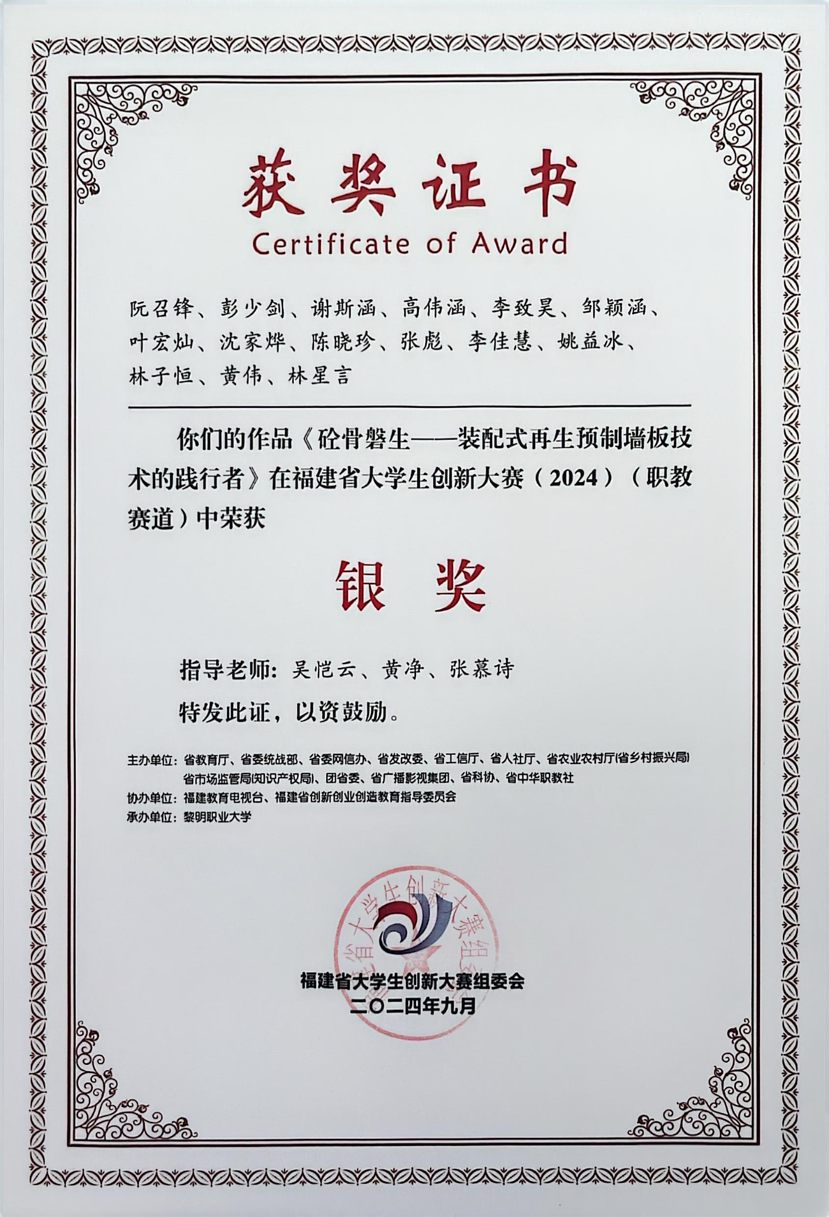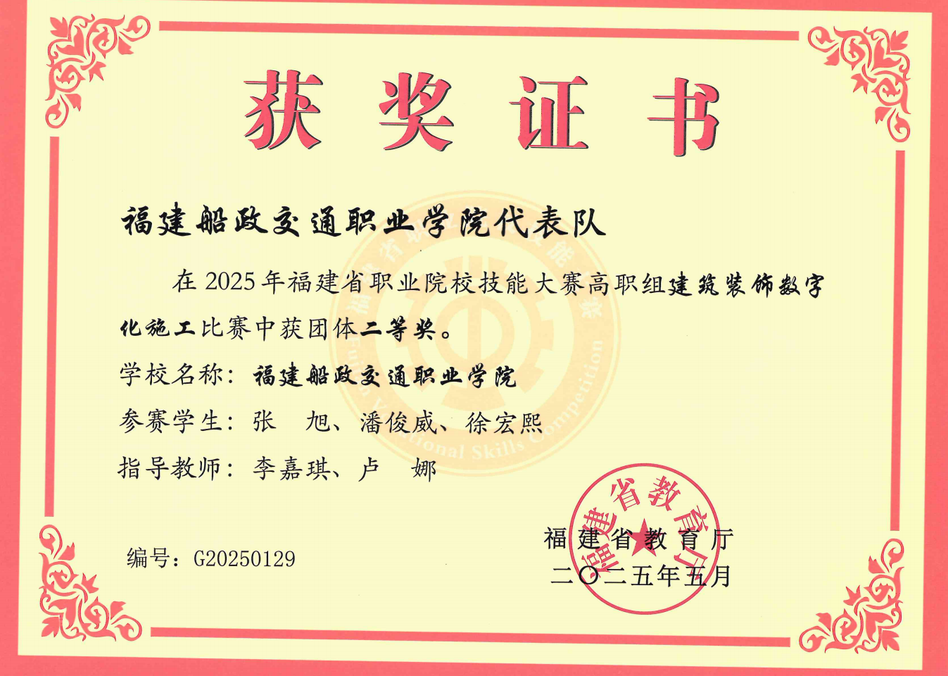以賽促學,成績斐然:依托經驗豐富的指導教師團隊及BIM社團,學生在各級各類高水平賽事中屢獲佳績,近3年學生獲國家級獎項7項,省一等獎9項。2025年專業(yè)學生代表福建省出戰(zhàn)第三屆國賽“數字建造”賽項,斬獲全國優(yōu)勝獎,實現福建省在該賽項國賽中優(yōu)勝獎“零的突破”。
