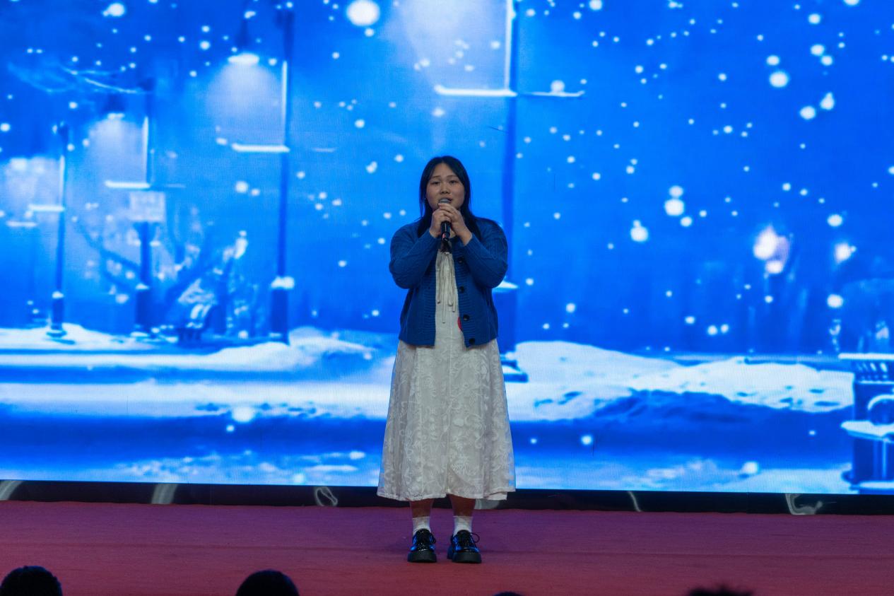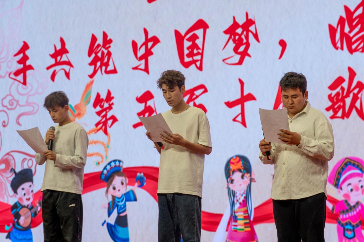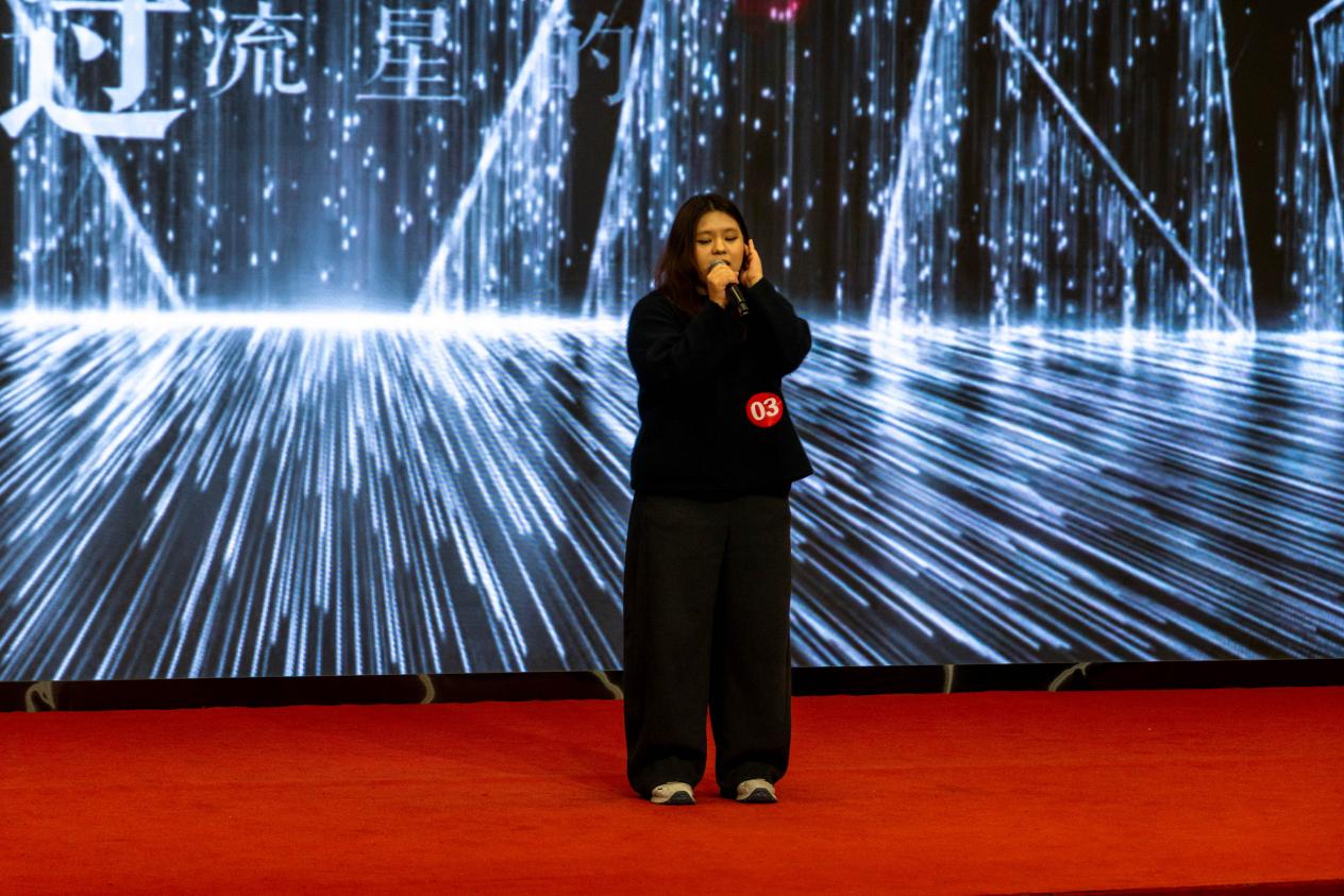 經(jīng)過前期的初賽評選,共有十位選手晉級決賽。賽前,三位來自新疆的少數(shù)民族學子以《同心筑夢,聚力前行》為題,獻上了一場飽含深情的朗誦表演。比賽時,選手們以不同的音樂風格重新演繹經(jīng)典,演唱的每一首歌曲都承載著深厚的民族情感和青年的使命擔當,他們的出色表現(xiàn)讓觀眾掌聲雷動。比賽間隙設有抽獎環(huán)節(jié),增進了同學間的交流互動。最終,經(jīng)評委和大眾評審共同評選出十佳歌手的獲獎排名。