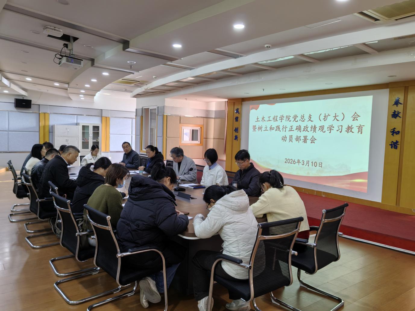 3月10日,土木工程學院黨總支召開黨總支(擴大)會暨樹立和踐行正確政績觀學習教育動員部署會,傳達學習習近平總書記關于樹立和踐行正確政績觀的重要論述,中央黨的建設工作領導小組會議精神、省委黨的建設工作領導小組會議精神、省教育工委、省教育廳會議精神、學校黨委會精神,研究部署學院學習教育工作。領導班子成員、副科級及以上干部、黨支部書記、副書記參加會議。會議由黨總支書記高杰同志主持。