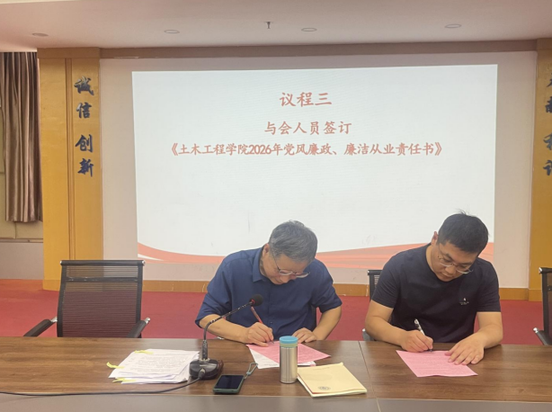 會上,黨總支書記高杰同志代表黨總支與參會人員簽訂2026年黨風(fēng)廉政、廉潔從業(yè)責(zé)任書,明確責(zé)任要求,層層傳導(dǎo)壓力。會議要求全體黨員干部要時刻保持清醒頭腦,嚴(yán)守紀(jì)律規(guī)矩,筑牢拒腐防變思想防線,切實增強廉潔自律意識,做到忠誠干凈擔(dān)當(dāng)。