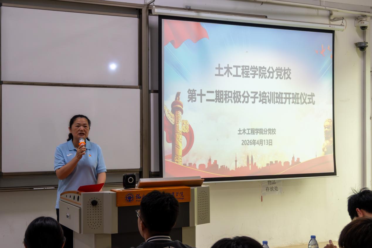 2026年4月13日,培訓(xùn)班開(kāi)班儀式在創(chuàng)新樓102舉行。土木工程學(xué)院黨總支副書(shū)記任穎卿老師、各年級(jí)輔導(dǎo)員、本期培訓(xùn)班全體學(xué)院參加了此次開(kāi)班儀式。任穎卿副書(shū)記作動(dòng)員講話,她指出,2026年是“十五五”規(guī)劃的開(kāi)局之年,全體學(xué)員要深刻認(rèn)識(shí)新時(shí)代賦予青年的歷史使命,珍惜學(xué)習(xí)機(jī)會(huì),端正入黨動(dòng)機(jī),以飽滿的熱情和扎實(shí)的學(xué)風(fēng)投入培訓(xùn),努力成長(zhǎng)為堪當(dāng)民族復(fù)興重任的時(shí)代新人。