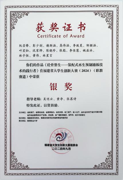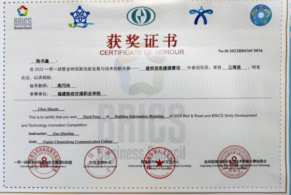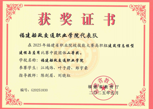 以賽促學(xué),成績斐然:依托經(jīng)驗(yàn)豐富的指導(dǎo)教師團(tuán)隊及BIM社團(tuán),學(xué)生在各級各類高水平賽事中屢獲佳績,近3年學(xué)生獲國家級獎項(xiàng)7項(xiàng),省一等獎9項(xiàng)。2025年專業(yè)學(xué)生代表福建省出戰(zhàn)第三屆國賽“數(shù)字建造”賽項(xiàng),斬獲全國優(yōu)勝獎,實(shí)現(xiàn)福建省在該賽項(xiàng)國賽中優(yōu)勝獎“零的突破”。
