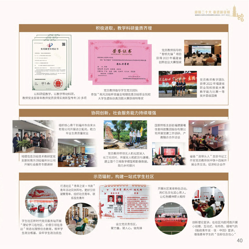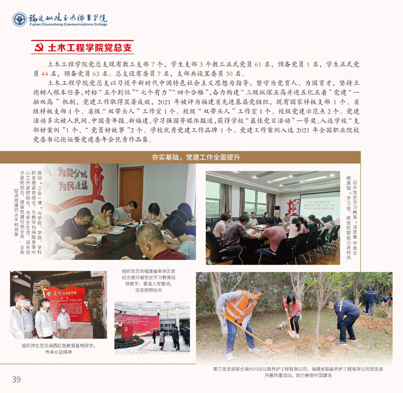 十九大以來(lái),福建船政交通職業(yè)學(xué)院堅(jiān)持以習(xí)近平新時(shí)代中國(guó)特色社會(huì)主義思想為指導(dǎo),堅(jiān)持社會(huì)主義辦學(xué)方向,深入貫徹黨的十九大和十九屆歷次全會(huì)精神,堅(jiān)守“為黨育人、為國(guó)育才”的初心和使命,慎終如始推進(jìn)學(xué)校黨的政治建設(shè)、思想建設(shè)、組織建設(shè)、作風(fēng)建設(shè)、紀(jì)律建設(shè)、制度建設(shè),黨的組織體系和學(xué)校治理體系相得益彰,黨建引領(lǐng)推動(dòng)創(chuàng)新船政、質(zhì)量船政、文化船政協(xié)奏齊鳴,政治生態(tài)、學(xué)術(shù)生態(tài)、文化生態(tài)持續(xù)向好,辦學(xué)效率、辦學(xué)效能、辦學(xué)效益顯著提升!