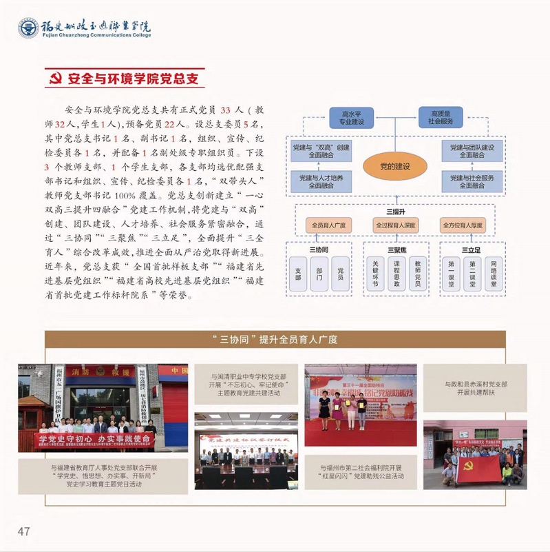 十九大以來,福建船政交通職業(yè)學(xué)院堅(jiān)持以習(xí)近平新時代中國特色社會主義思想為指導(dǎo),堅(jiān)持社會主義辦學(xué)方向,深入貫徹黨的十九大和十九屆歷次全會精神,堅(jiān)守“為黨育人、為國育才”的初心和使命,慎終如始推進(jìn)學(xué)校黨的政治建設(shè)、思想建設(shè)、組織建設(shè)、作風(fēng)建設(shè)、紀(jì)律建設(shè)、制度建設(shè),黨的組織體系和學(xué)校治理體系相得益彰,黨建引領(lǐng)推動創(chuàng)新船政、質(zhì)量船政、文化船政協(xié)奏齊鳴,政治生態(tài)、學(xué)術(shù)生態(tài)、文化生態(tài)持續(xù)向好,辦學(xué)效率、辦學(xué)效能、辦學(xué)效益顯著提升!