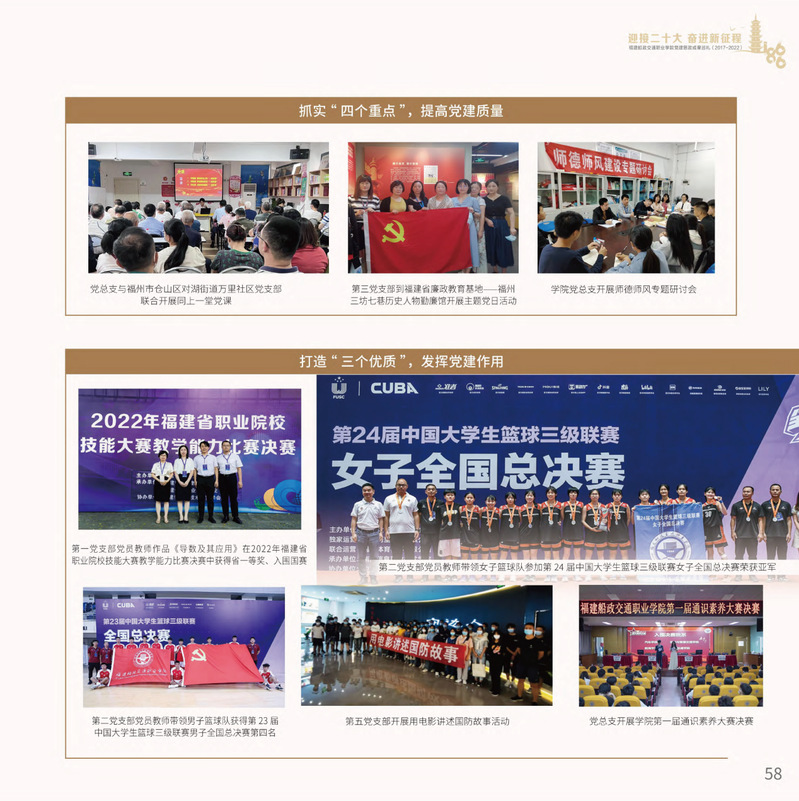 十九大以來,福建船政交通職業(yè)學(xué)院堅(jiān)持以習(xí)近平新時(shí)代中國特色社會(huì)主義思想為指導(dǎo),堅(jiān)持社會(huì)主義辦學(xué)方向,深入貫徹黨的十九大和十九屆歷次全會(huì)精神,堅(jiān)守為黨育人、為國育才的初心和使命,慎終如始推進(jìn)學(xué)校黨的政治建設(shè)、思想建設(shè)、組織建設(shè)、作風(fēng)建設(shè)、紀(jì)律建設(shè)、制度建設(shè),黨的組織體系和學(xué)校治理體系相得益彰,黨建引領(lǐng)推動(dòng)創(chuàng)新船政、質(zhì)量船政、文化船政協(xié)奏齊鳴,政治生態(tài)、學(xué)術(shù)生態(tài)、文化生態(tài)持續(xù)向好,辦學(xué)效率、辦學(xué)效能、辦學(xué)效益顯著提升!