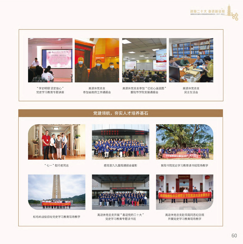 十九大以來(lái),福建船政交通職業(yè)學(xué)院堅(jiān)持以習(xí)近平新時(shí)代中國(guó)特色社會(huì)主義思想為指導(dǎo),堅(jiān)持社會(huì)主義辦學(xué)方向,深入貫徹黨的十九大和十九屆歷次全會(huì)精神,堅(jiān)守“為黨育人、為國(guó)育才”的初心和使命,慎終如始推進(jìn)學(xué)校黨的政治建設(shè)、思想建設(shè)、組織建設(shè)、作風(fēng)建設(shè)、紀(jì)律建設(shè)、制度建設(shè),黨的組織體系和學(xué)校治理體系相得益彰,黨建引領(lǐng)推動(dòng)創(chuàng)新船政、質(zhì)量船政、文化船政協(xié)奏齊鳴,政治生態(tài)、學(xué)術(shù)生態(tài)、文化生態(tài)持續(xù)向好,辦學(xué)效率、辦學(xué)效能、辦學(xué)效益顯著提升!