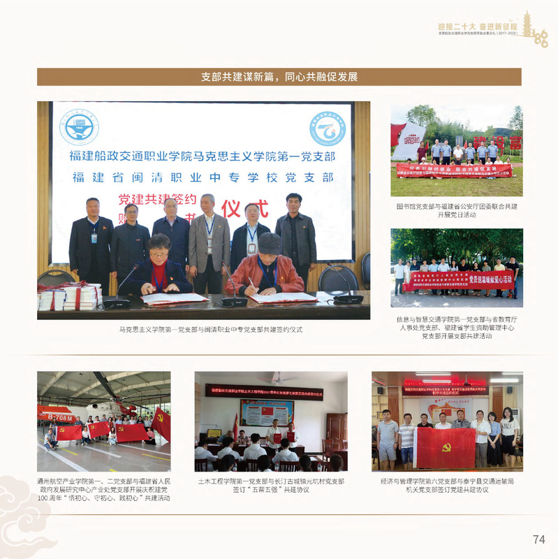 十九大以來,福建船政交通職業(yè)學(xué)院堅持以習(xí)近平新時代中國特色社會主義思想為指導(dǎo),堅持社會主義辦學(xué)方向,深入貫徹黨的十九大和十九屆歷次全會精神,堅守“為黨育人、為國育才”的初心和使命,慎終如始推進學(xué)校黨的政治建設(shè)、思想建設(shè)、組織建設(shè)、作風(fēng)建設(shè)、紀律建設(shè)、制度建設(shè),黨的組織體系和學(xué)校治理體系相得益彰,黨建引領(lǐng)推動創(chuàng)新船政、質(zhì)量船政、文化船政協(xié)奏齊鳴,政治生態(tài)、學(xué)術(shù)生態(tài)、文化生態(tài)持續(xù)向好,辦學(xué)效率、辦學(xué)效能、辦學(xué)效益顯著提升! 近期,學(xué)校官微將陸續(xù)推出“學(xué)校黨建思政成果巡禮(2017-2022)”專題系列,邀請您共同回顧學(xué)校過去五年黨建思政工作的發(fā)展歷程。 凝聚師生有力