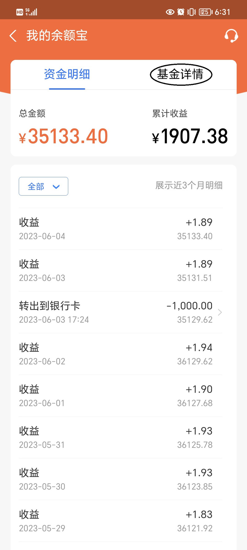 進(jìn)入我的余額寶頁面,點(diǎn)擊“基金詳情”。