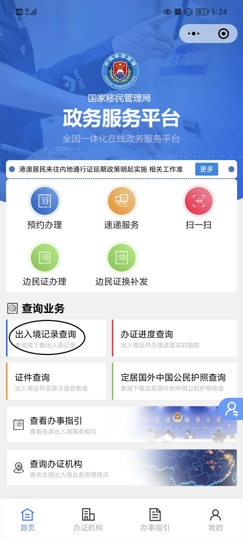 在首頁點(diǎn)擊“出入境記錄查詢”,可查本人出入境記錄。