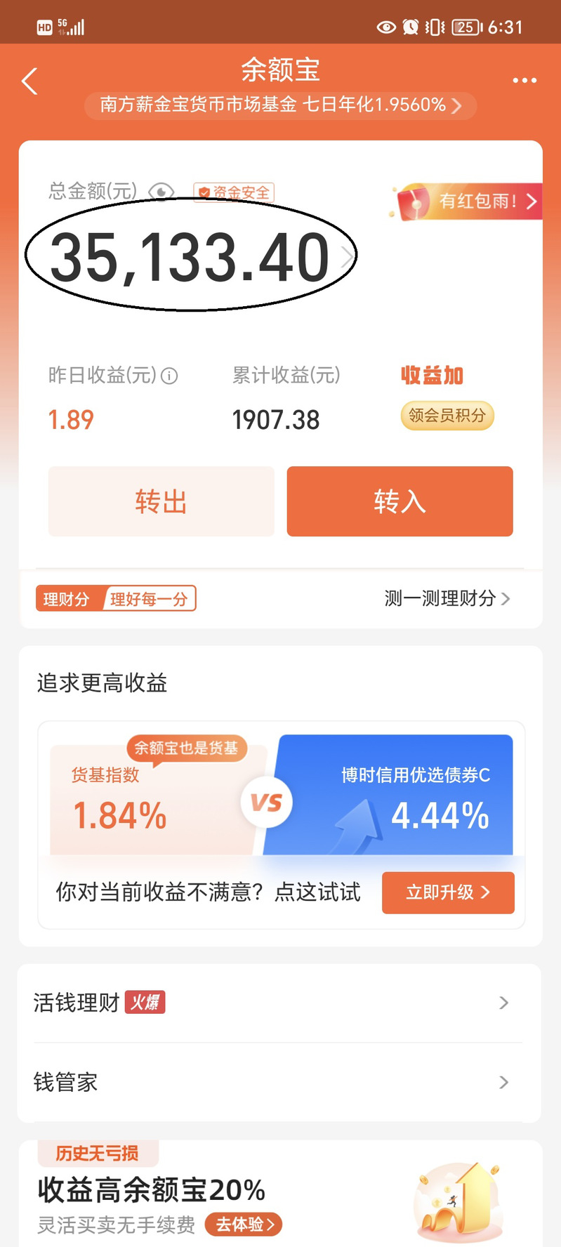 進(jìn)入余額寶頁面,點(diǎn)擊金額。