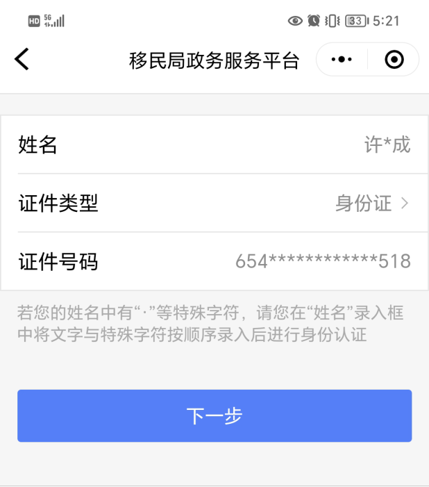 進(jìn)入實(shí)名認(rèn)證環(huán)節(jié),輸入本人姓名、身份證號,點(diǎn)擊“下一步”。