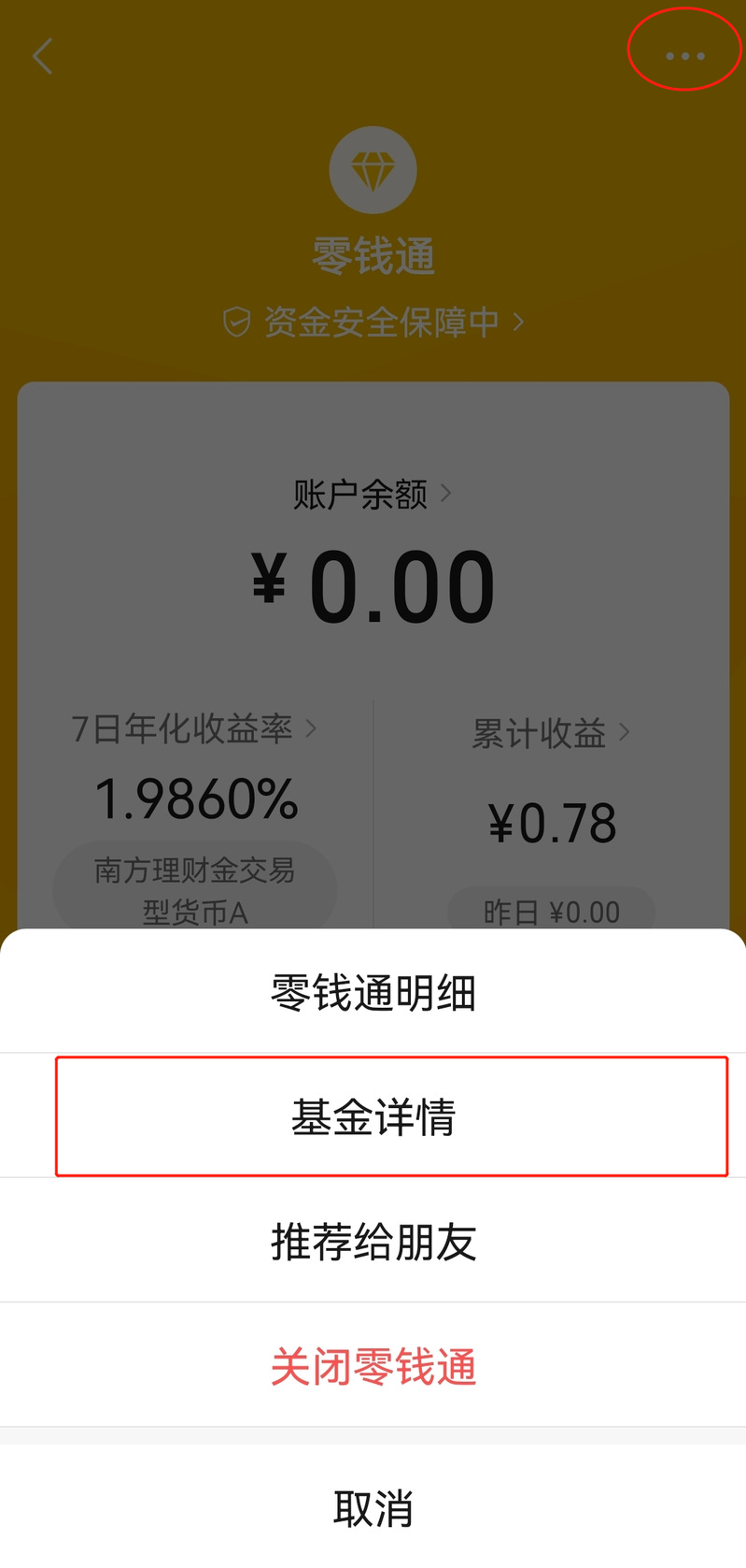 點(diǎn)擊“錢包”,可查看“零錢通”。其他基金和理財(cái)產(chǎn)品可點(diǎn)擊“理財(cái)通”查詢。