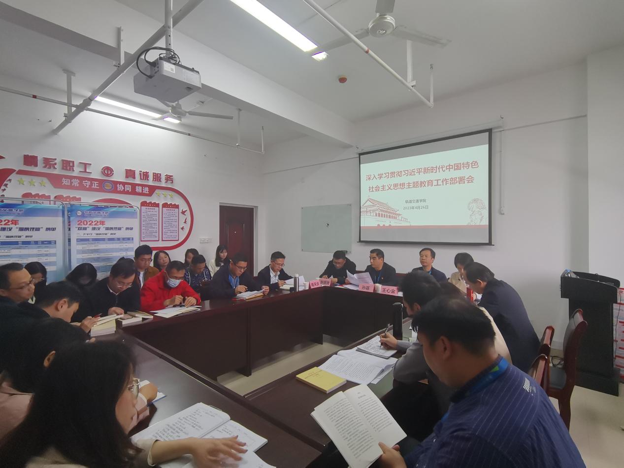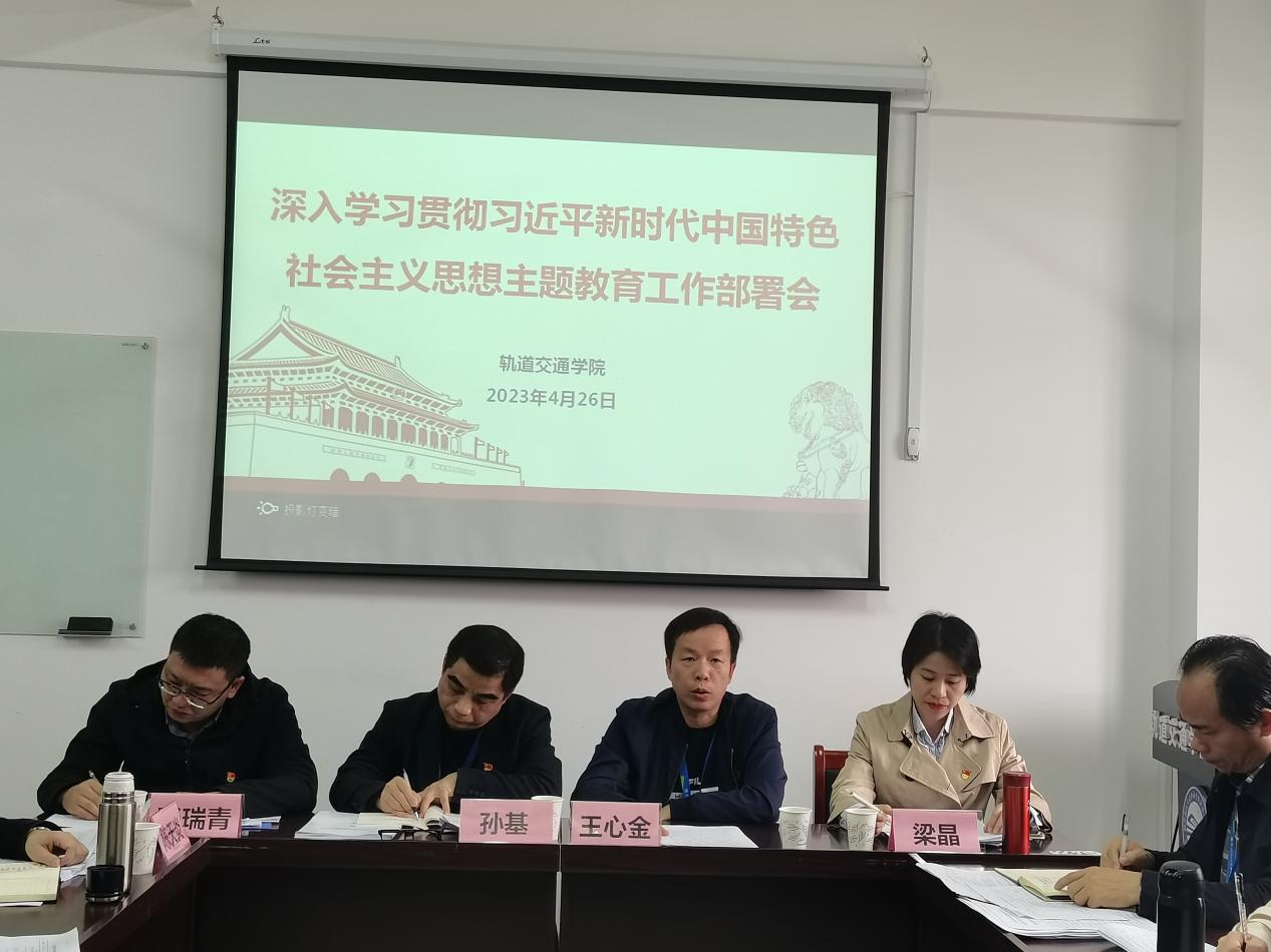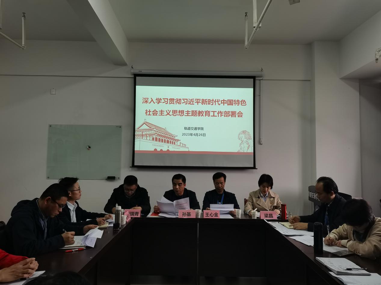 4月26日下午,軌道交通學(xué)院召開深入學(xué)習(xí)貫徹習(xí)近平新時代中國特色社會主義思想主題教育工作部署會。會議由軌道交通學(xué)院黨總支書記孫基主持并作工作部署,校協(xié)調(diào)推進(jìn)組四組組長、校黨委學(xué)生工作部部長王心金蒞會指導(dǎo)并講話,學(xué)院全體黨員、副科級及以上干部、學(xué)校主題教育協(xié)調(diào)推進(jìn)四組成員等參加會議。