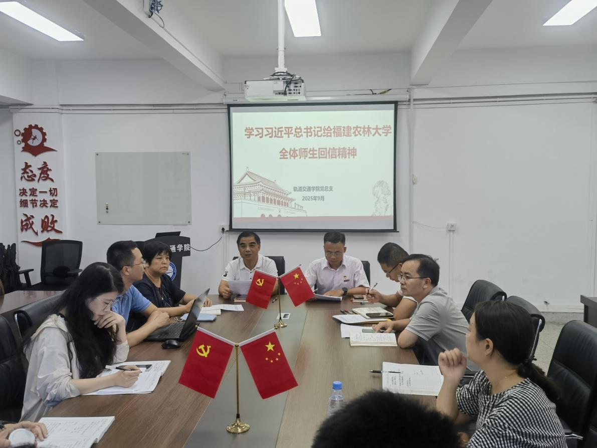 9月29日,軌道交通學(xué)院黨總支召開理論學(xué)習(xí)中心組(擴(kuò)大)會(huì)議,專題學(xué)習(xí)研討習(xí)近平總書記給福建農(nóng)林大學(xué)全體師生的重要回信。會(huì)議指出,習(xí)近平總書記的回信立意高遠(yuǎn)、內(nèi)涵深刻、情感真摯,充分體現(xiàn)了黨中央對(duì)教育事業(yè)的高度重視、對(duì)廣大師生和科技工作者的親切關(guān)懷,為新時(shí)代高校落實(shí)立德樹人根本任務(wù)、服務(wù)國家戰(zhàn)略需求指明了前進(jìn)方向、注入了強(qiáng)大動(dòng)力?;匦挪粌H是對(duì)福建農(nóng)林大學(xué)師生的鼓舞,也是對(duì)全國高校師生扎根一線、服務(wù)基層、矢志創(chuàng)新的巨大勉勵(lì),具有重要的政治意義、時(shí)代意義和實(shí)踐指導(dǎo)意義。