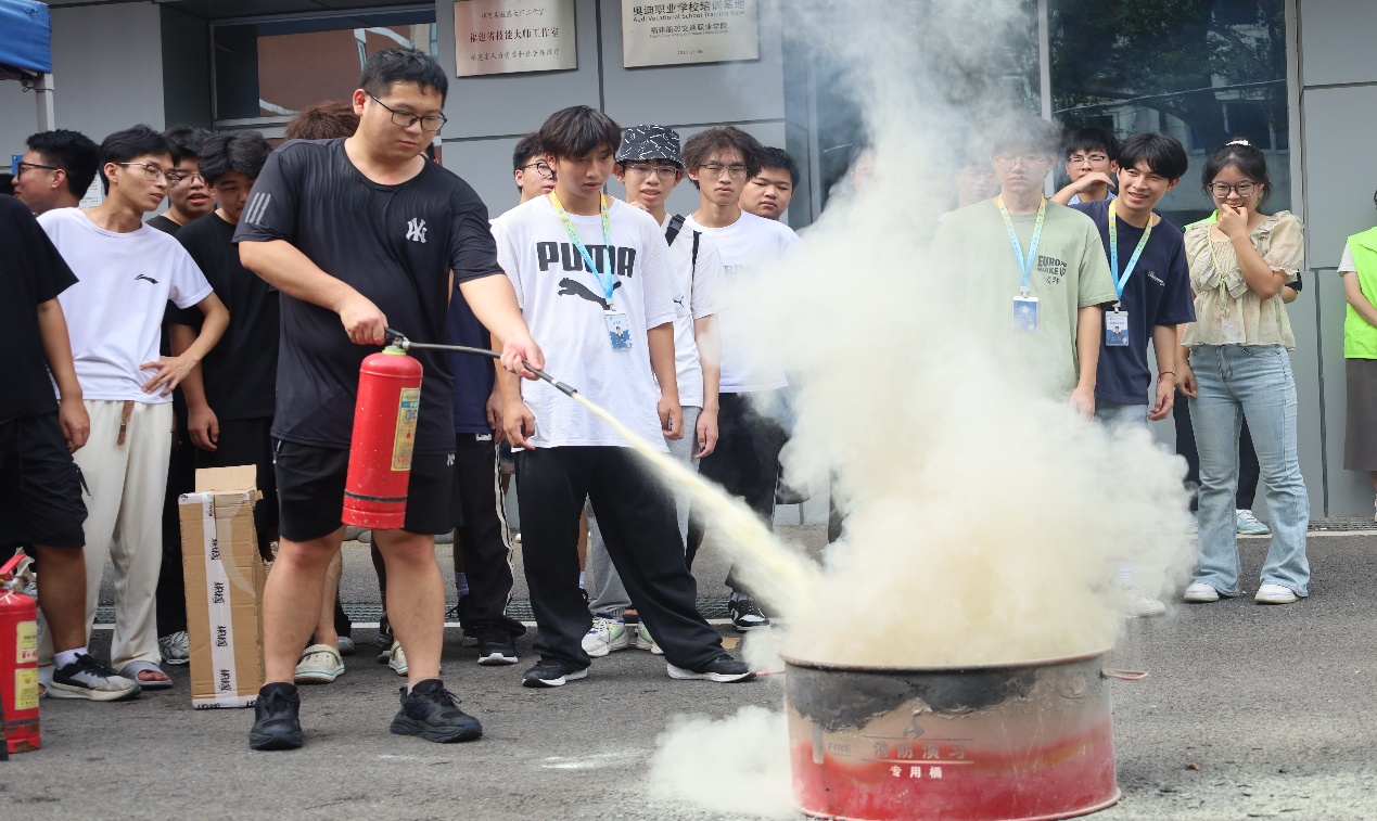 理論講解結(jié)束后,進入了實戰(zhàn)操作環(huán)節(jié)。同學(xué)們踴躍參與,親手操作滅火器,對準(zhǔn)模擬火源進行撲救。通過親身體驗,大家成功將理論知識轉(zhuǎn)化為實戰(zhàn)技能。