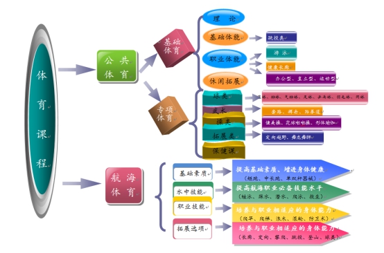 《體育與健康》課程按模塊化設(shè)置,為不同專業(yè)學(xué)生參加技能大賽奠定良好的身體基礎(chǔ)。公共體育開設(shè)兩年設(shè)《基礎(chǔ)體育》和《專項(xiàng)體育》。一年級為《基礎(chǔ)體育》模塊,設(shè)理論部分、基礎(chǔ)體能、職業(yè)體育和拓展選項(xiàng)教學(xué)四個部分;二年級開設(shè)16門專項(xiàng)選項(xiàng)課程,學(xué)生自主選項(xiàng)。航海體育課程按模塊設(shè)基礎(chǔ)素質(zhì)、水中技能、職業(yè)技能、拓展選項(xiàng)四個模塊進(jìn)行教學(xué)。