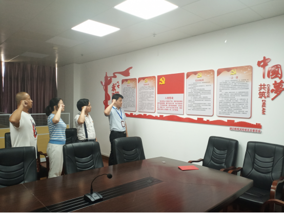 面向莊嚴(yán)的黨旗,3名黨員同志在總支副書記金晶晶帶領(lǐng)下,舉起右拳,莊嚴(yán)宣誓。伴隨著一句句鏗鏘有力的誓言,通識(shí)教育學(xué)院黨總支“給黨員過政治生日”活動(dòng)在重溫入黨誓詞的儀式中拉開帷幕。3名黨員入黨日期均為7月份,黨齡23年的陳占通同志回顧了近二十年來黨的歷程和社會(huì)進(jìn)步,曹會(huì)勇同志詳細(xì)講述入黨時(shí)的情形,7月1日入黨的江逸同志表示此次活動(dòng)進(jìn)一步增強(qiáng)了黨員榮譽(yù)感、歸屬感。最后,黨總支向3位黨員贈(zèng)送“政治生日”賀卡。