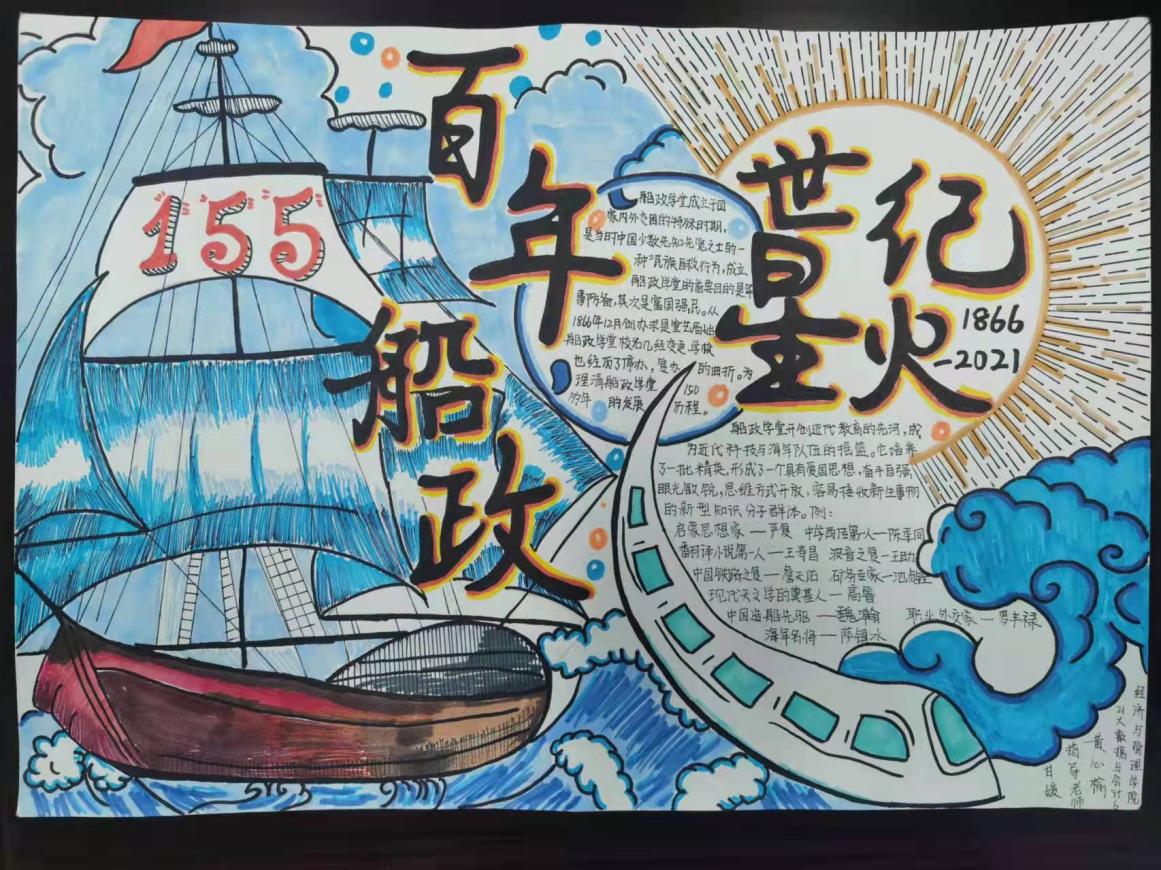 在船政杯-手抄報(bào)比賽和船政杯-DIY作品比賽中,同學(xué)們以“船”為主題,緊扣船政文化,通過(guò)手工制作船模、特色建筑模型、十字繡、剪紙、古時(shí)計(jì)數(shù)的算盤(pán)、數(shù)學(xué)用具,主題鮮明、富有創(chuàng)意、色彩運(yùn)用恰當(dāng)、體現(xiàn)美感和感染力,充分展示了豐富的想象力。
