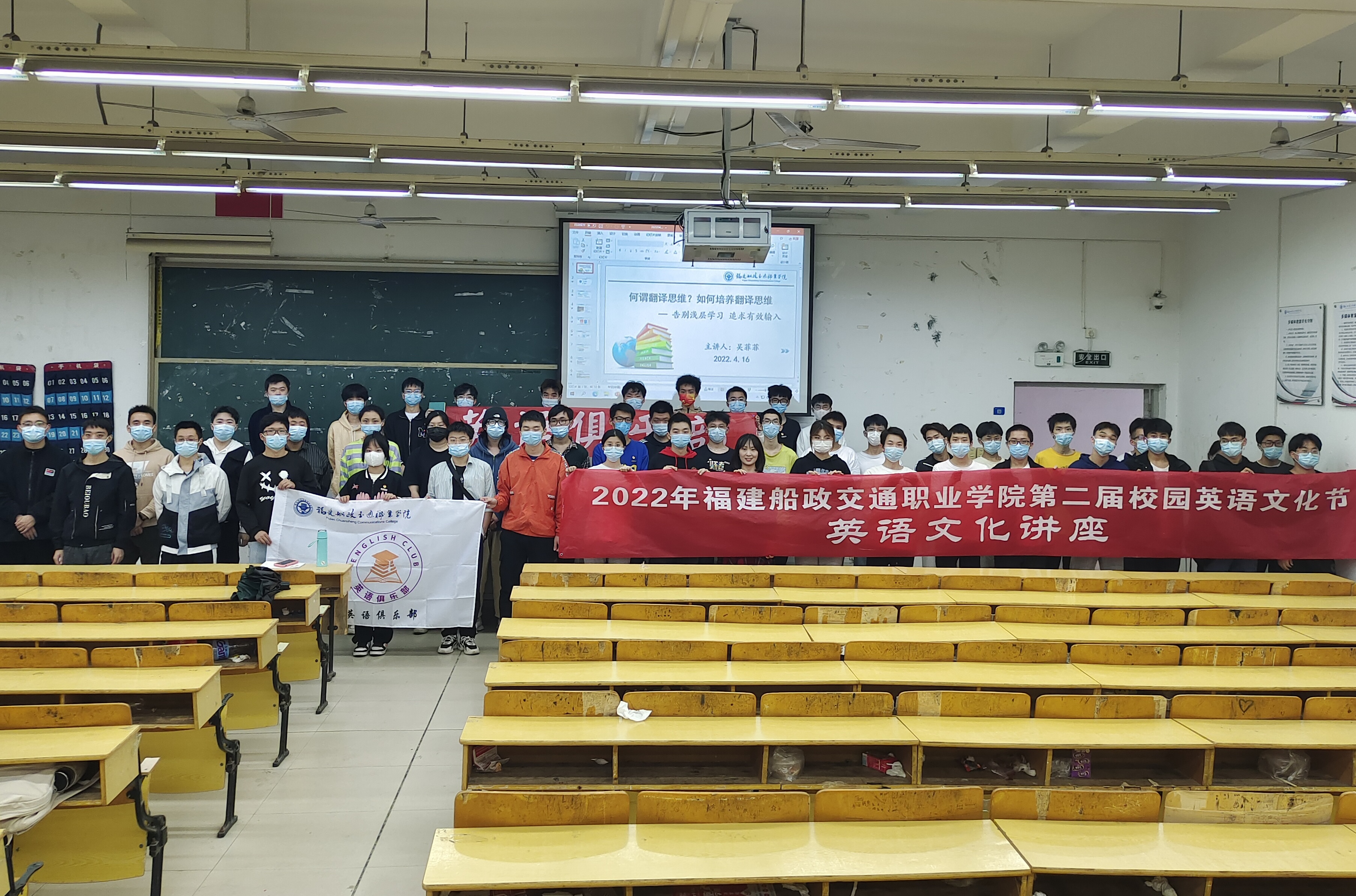 為落實立德樹人的根本任務,提高學生的職場涉外溝通能力和多元文化交流能力,提升英語語言思維。2022年4月16日周六下午,英語俱樂部指導老師—吳菲菲在北區(qū)26號樓602舉辦了題為《何謂翻譯思維?如何培養(yǎng)翻譯思維—告別淺層學習,追求有效輸入》的講座,共153位學生報名參加,本次講座拉開了第二屆英語文化節(jié)的序幕。