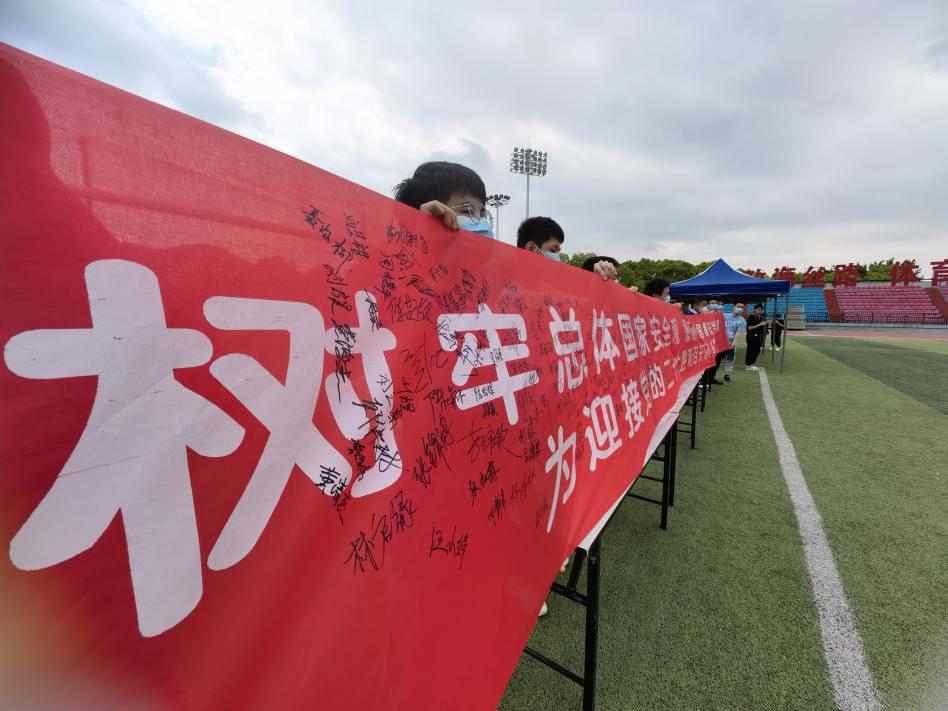 活動(dòng)中,學(xué)生代表張政同學(xué),帶領(lǐng)大家進(jìn)行“爭(zhēng)做新時(shí)代國(guó)家安全的鋼鐵衛(wèi)士宣誓”?;顒?dòng)最后,進(jìn)行國(guó)家安全教育日簽名儀式,師生們有序走向簽字席簽下自己作為踐行者的姓名。