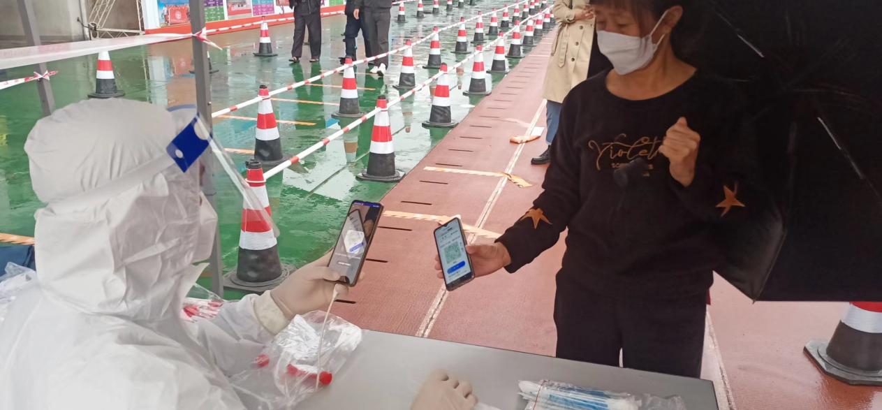 “請排好隊,每人保持1米距離。在倉山區(qū)萬里村核酸檢測點會看到一名多面志愿者,有時身穿紅馬甲,有條不紊地指揮著前來做核酸檢測的群眾,有時身穿“大白服”,協(xié)助核酸信息采集,有時幫忙檢測點做好核酸檢測準備工作。
