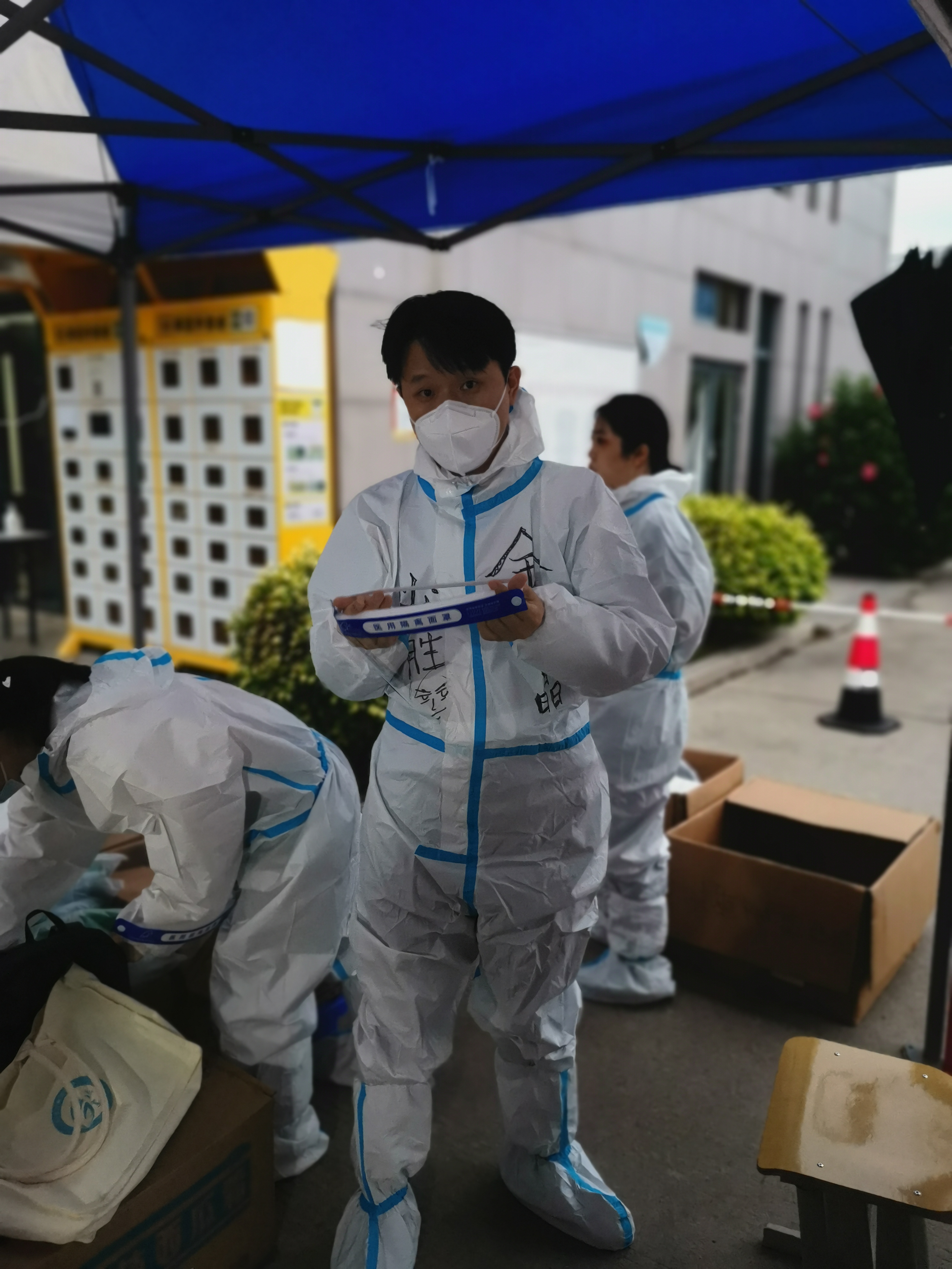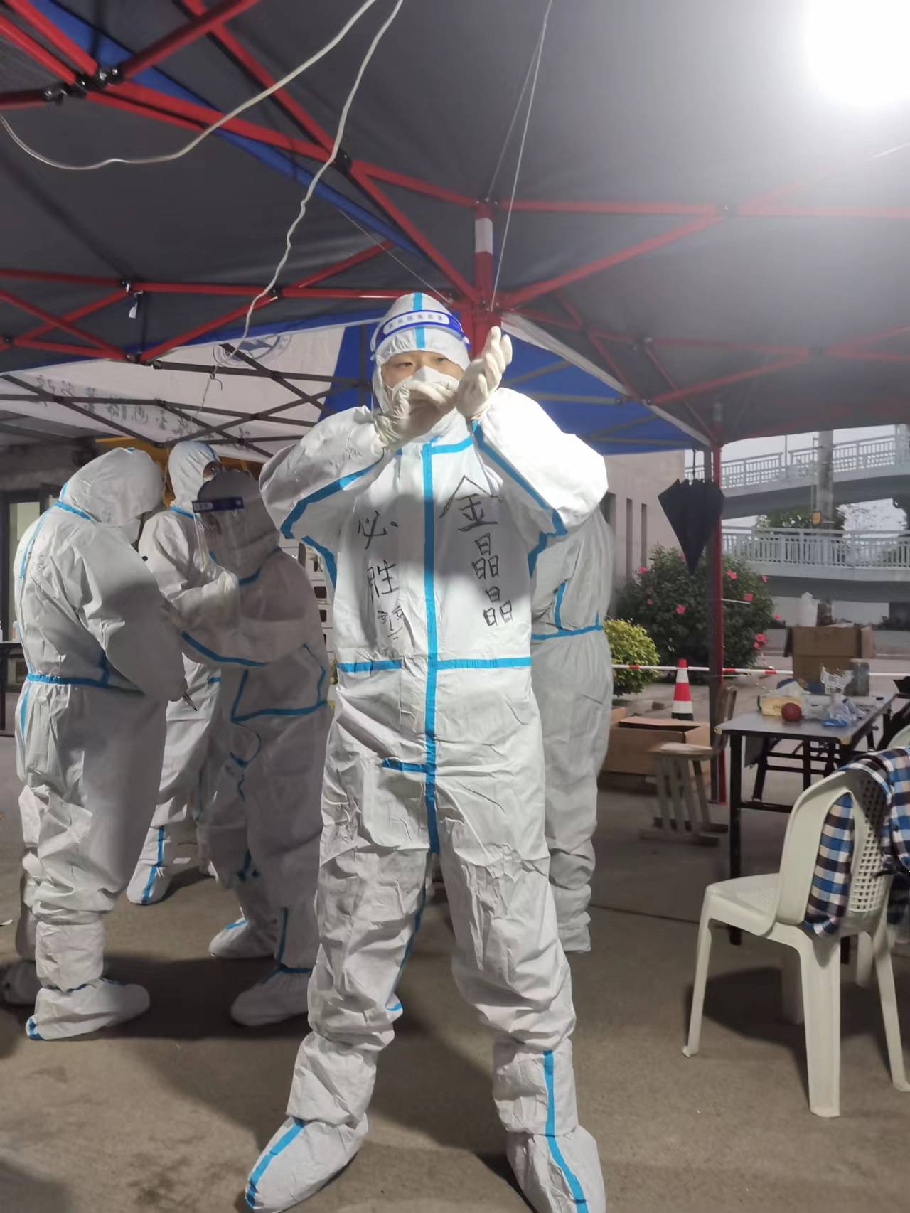 校園封閉管理期間,曾新平穿上防護服,化身“防護白”,聽從指揮,支援校內(nèi)全員核酸檢測、學生宿舍管理等工作。從學生生活物資的配送,到核酸檢測掃碼,不辭辛苦,認真負責。曾新平說,“愿疫情早點結(jié)束,福州加油!船政加油!”