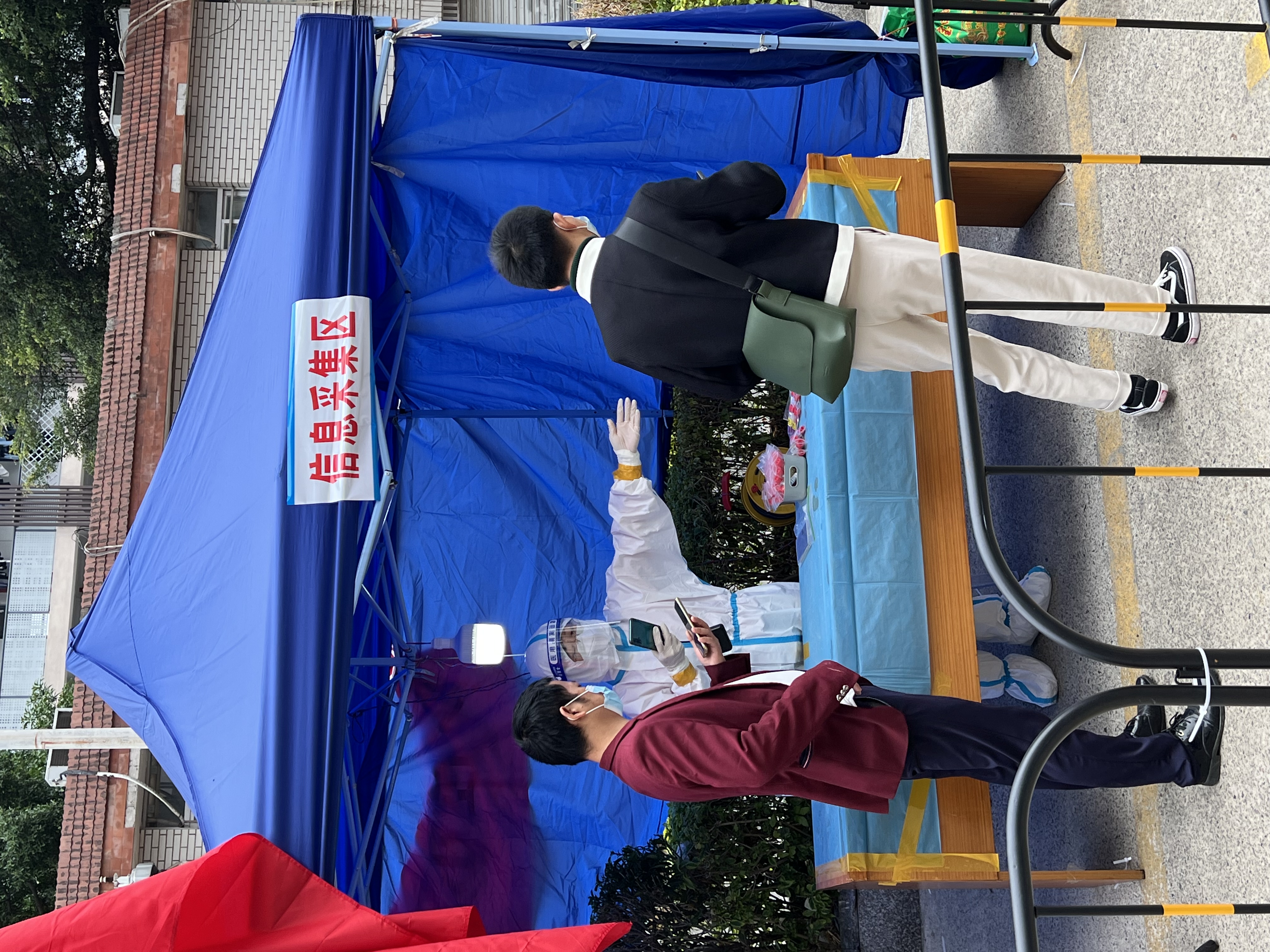 “請大家間隔一米,保持安全距離”“請佩戴好口罩”“請大家提前出示檢測二維碼”……在校內(nèi)全員核酸檢測現(xiàn)場,章青松化身掃碼員或引導員,與黨員教師志愿者并肩戰(zhàn)斗,全程配合。他們分工明確、配合默契,保障了核酸檢測工作的順利完成,用實際行動筑牢戰(zhàn)“疫”堡壘。
