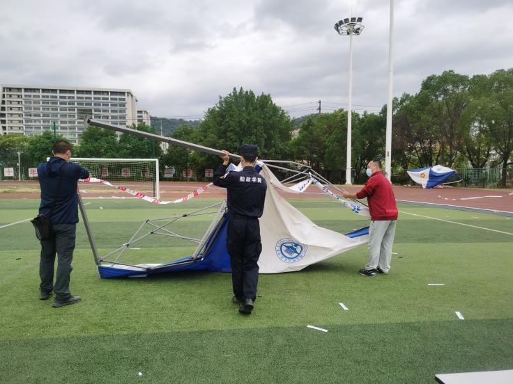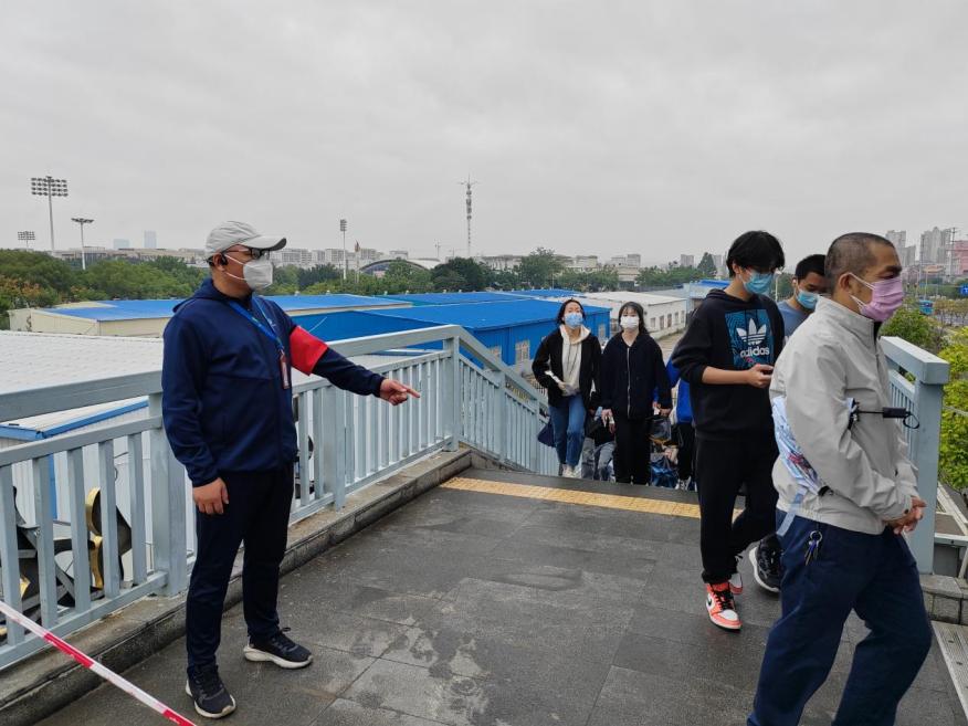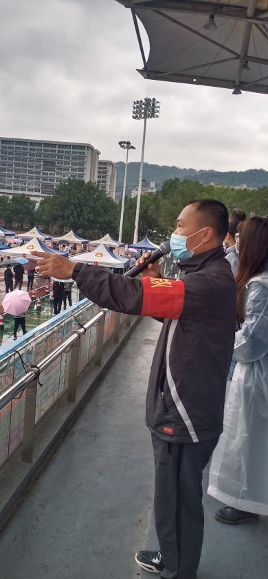 “請同學們保持一米間隔,打開健康碼,把手機屏幕調(diào)亮”。每天,郭建忠在學院青春田徑場(原名:北區(qū)田徑場)協(xié)調(diào)校內(nèi)全員核酸檢測人員秩序,助力校內(nèi)全員核酸檢測高效有序進行。校內(nèi)全員核酸檢測結(jié)束后,郭建忠和章青松、校園保安一起整理青春體育場核酸檢測現(xiàn)場。郭建忠說,“我們黨員要從大局出發(fā),積極服務(wù)學校疫情防控工作”。