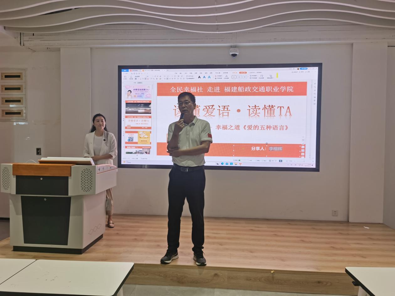 2023年9月20日下午,我院邀請全民幸福社福州院院長李榕輝老師做以題為《讀懂愛語讀懂TA》的培訓(xùn)。李榕輝老師是心啟動(dòng)家庭文化主理人、國家三級心理咨詢師,國家三級人力資源管理師、家庭治療暨親子教育指導(dǎo)師、閩清縣心理咨詢師協(xié)會(huì)負(fù)責(zé)人。我院全體教職工和寧夏職業(yè)技術(shù)學(xué)院侯宗麗老師參加培訓(xùn),培訓(xùn)課由我院方儒欽院長主持。