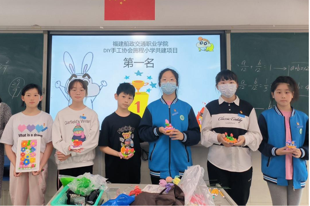 在福建船政交通職業(yè)學(xué)院團(tuán)委牽頭下,DIY手工協(xié)會(huì)還與施程小學(xué)共建項(xiàng)目,以兩校資源共享、攜手共進(jìn)為基礎(chǔ),由DIY手工協(xié)會(huì)組織手工興趣班教學(xué)活動(dòng),以學(xué)生參與手工制作、競(jìng)賽評(píng)選等形式,為愛好手工制作的小朋友們提供了一個(gè)展現(xiàn)自我的平臺(tái),強(qiáng)化小朋友們創(chuàng)新意識(shí)和競(jìng)爭(zhēng)意識(shí),鍛煉小朋友們的動(dòng)手能力。