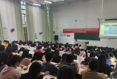 5月10日下午,第三屆校園英語文化節(jié)英語四級(jí)講座在福佑園(排下校區(qū))1號(hào)樓階梯教室舉辦,英語教研室吳菲菲老師舉辦了英語四級(jí)講座,本次講座吸引了220位學(xué)生的參與。講座結(jié)合四級(jí)考試的模式,指導(dǎo)學(xué)生如何培養(yǎng)語言思維能力、應(yīng)用能力和跨文化交際能力,打開了學(xué)生們的解題思路,加強(qiáng)了答題技巧,提升英語四級(jí)的應(yīng)考能力。