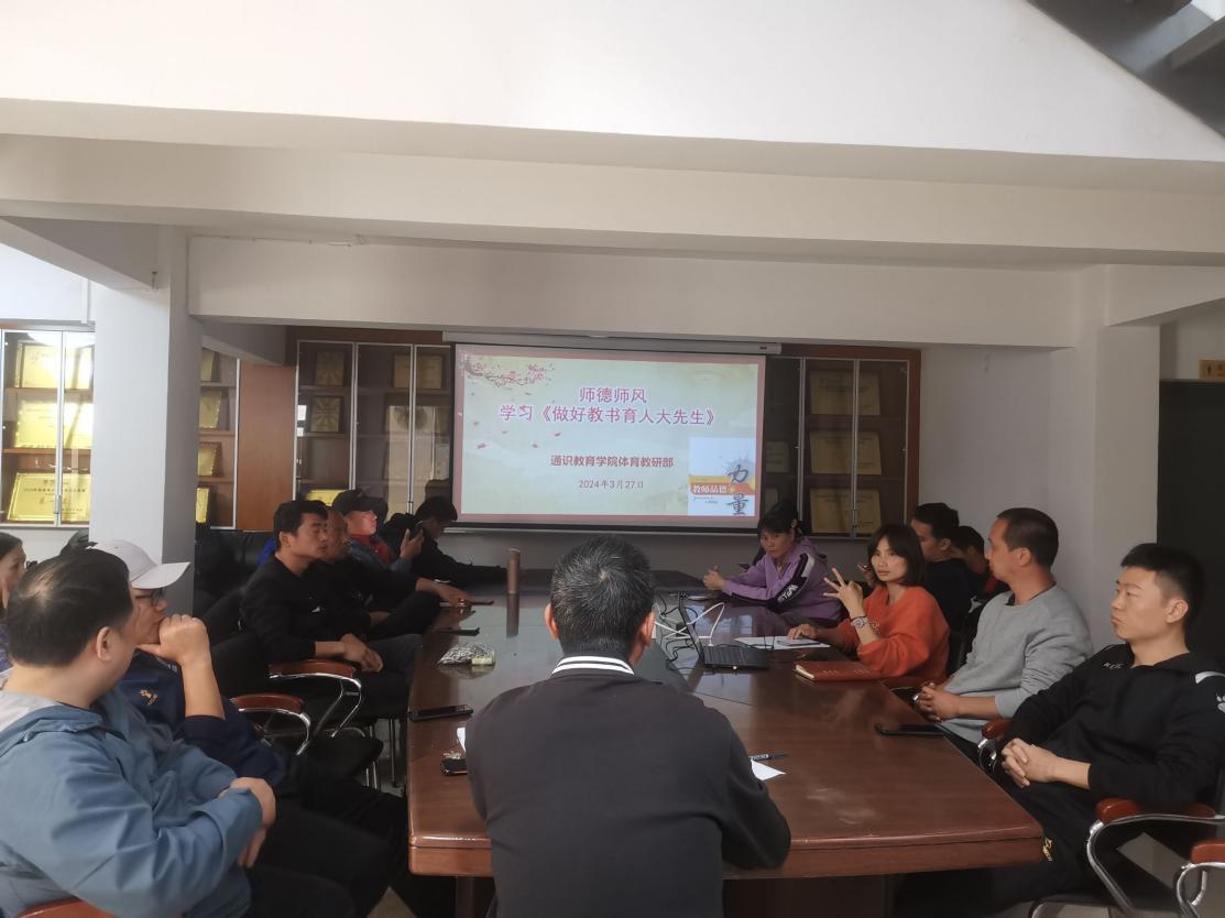 3月27日下午,通識(shí)教育學(xué)院各教研室組織學(xué)習(xí)《中華人民共和國(guó)愛國(guó)主義教育法》、《事業(yè)單位工作人員處分規(guī)定》和《做好教書育人大先生》,引導(dǎo)全體教師提高個(gè)人綜合素質(zhì),夯實(shí)教育教學(xué)基本功,進(jìn)一步加強(qiáng)新時(shí)代愛國(guó)主義教育,傳承和弘揚(yáng)愛國(guó)主義精神。