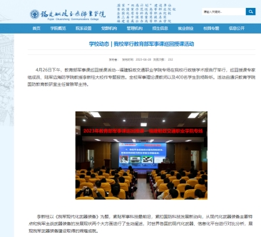 2.依托“黨建”思維,開展豐富多樣的學生活動,創(chuàng)新國防教育形式。支部充分發(fā)揮國防教育教研室學科優(yōu)勢,通過開展形式多樣、內(nèi)容豐富的課外活動,創(chuàng)新黨建工作的形式,讓黨建工作豐富活潑,深入人心。如,祭拜活動英雄、“愛我國防”大學生演講比賽、國家安全教育日系列活動、軍事技能大比武等活動,提高提高青年學子的國防意識和愛國精神。