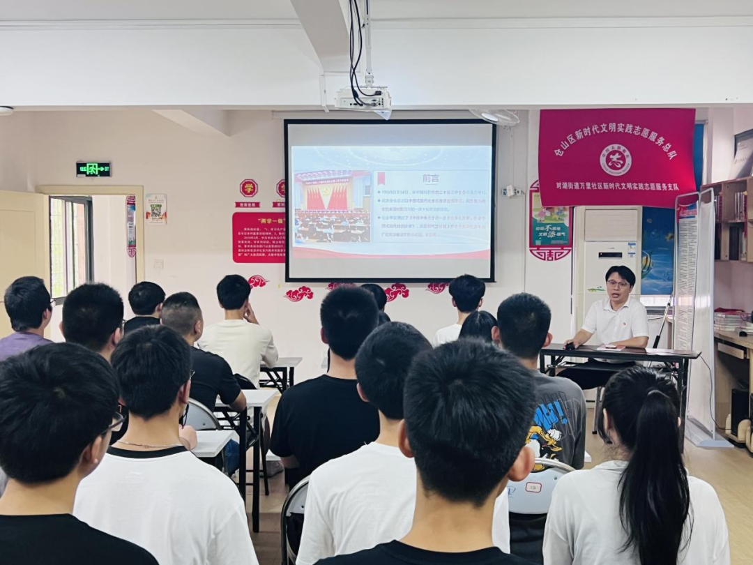 在社區(qū)黨員活動室,通識教育學(xué)院黨總支副書記金晶晶進(jìn)行學(xué)習(xí)貫徹黨的二十屆三中全會精神宣講,從深刻認(rèn)識黨的二十屆三中全會的重大意義、深入學(xué)習(xí)領(lǐng)會習(xí)近平總書記在全會上的重要講話精神、全面準(zhǔn)確理解《中共中央關(guān)于進(jìn)一步全面深化改革、推進(jìn)中國式現(xiàn)代化的決定》提出的重大舉措、貫徹落實(shí)會議精神等方面進(jìn)行闡釋輔導(dǎo)。會上,師生與社區(qū)工作人員圍繞深入學(xué)習(xí)貫徹黨的二十屆三中全會精神開展學(xué)習(xí)交流,現(xiàn)場氣氛熱烈。