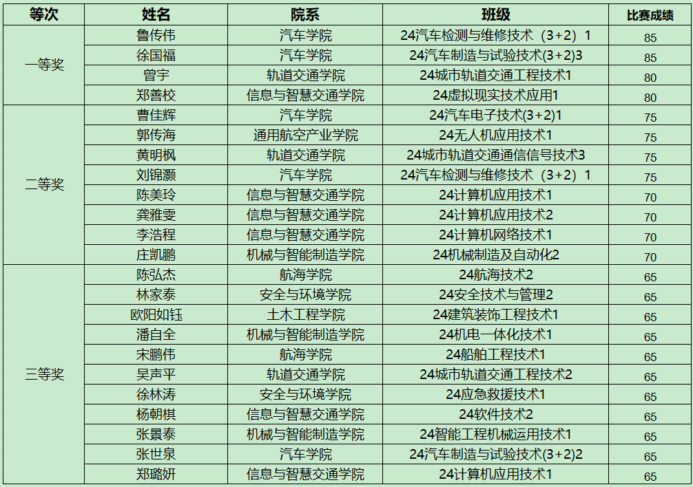 11月20日下午,福建船政交通職業(yè)學院新生杯“數學-求極限”大賽在福道園26號樓602和自強樓一樓順利舉辦,全校336人參賽,獲獎名單如下: