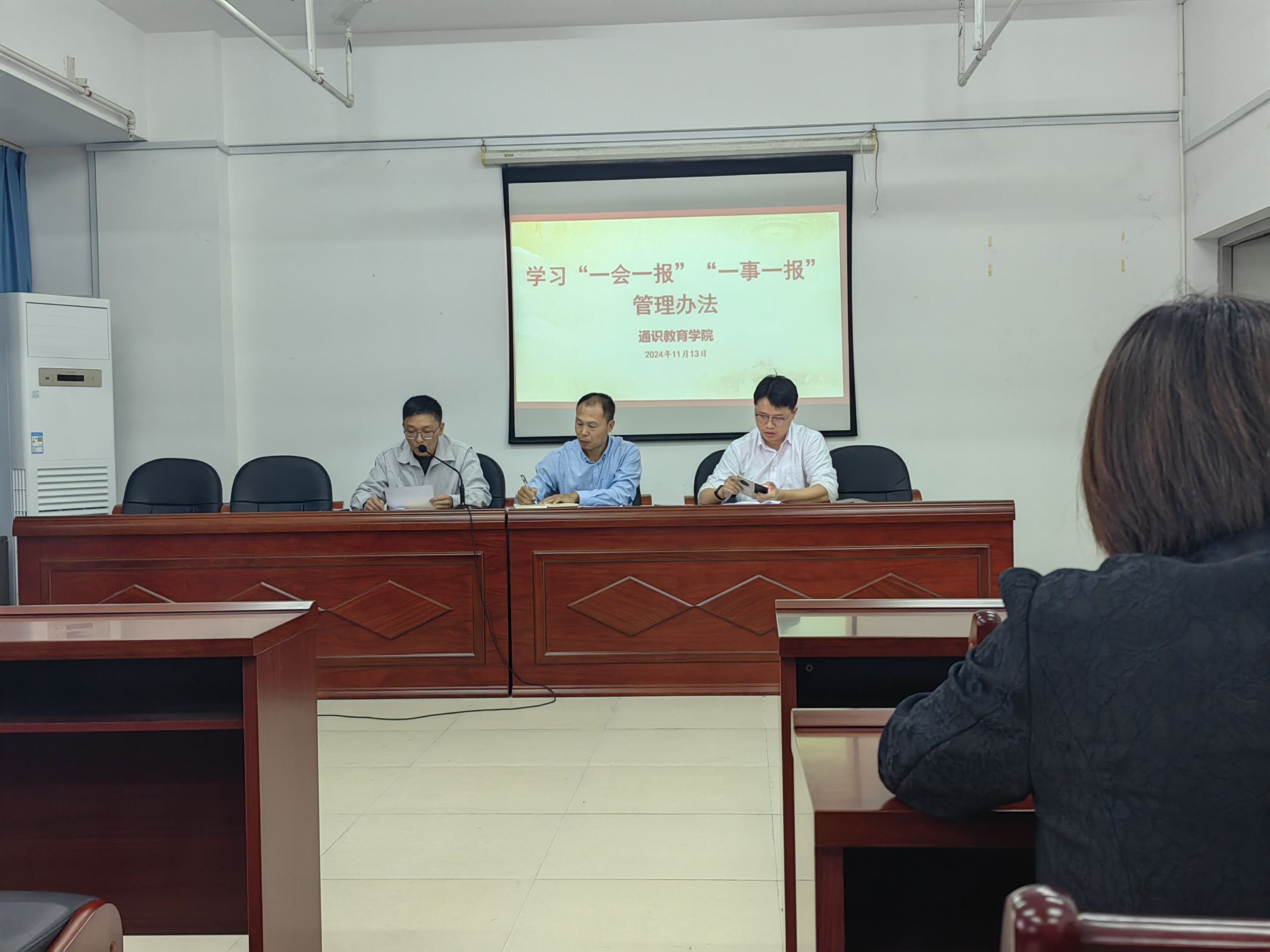 11月13日,通識教育學院召開教師大會,全體教師參會,學習黨的十屆三中全會精神、全國教育大會精神、習近平總書記來閩考察重要講話精神,學習《福建船政交通職業(yè)學院哲學社會科學報告會、研討會、講座“一會一報”論壇、年會、講壇等活動“一事一報”管理辦法》等文件精神。