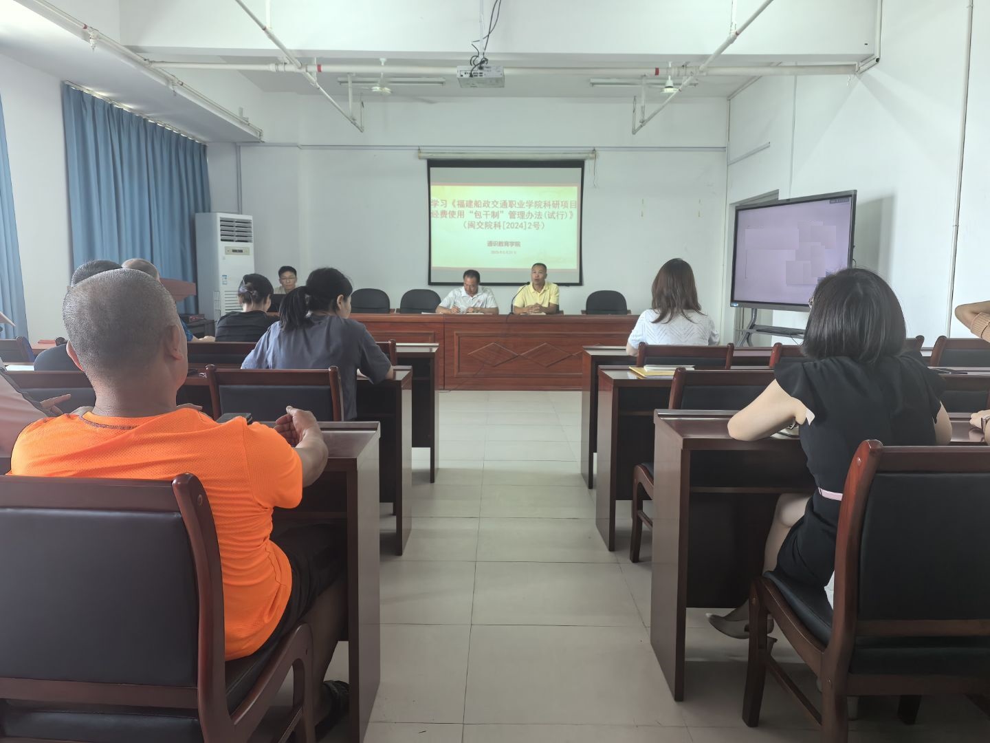 會上,郭建忠院長領(lǐng)學了《福建船政交通職業(yè)學院科研項目經(jīng)費使用“包干制”管理辦法(試行)》(閩交院科[2024]2號)和《福建船政交通職業(yè)學院科研計劃項目經(jīng)費管理辦法》(閩交院科[2024]4號)、《福建船政交通職業(yè)學院學術(shù)期刊分類目錄及學術(shù)論文認定辦法》(閩交院科[2024]7號)、《福建船政交通職業(yè)學院科研項目級別與項目負責人認定辦法》(閩交院科[2024]15號)、《福建船政交通職業(yè)學院大型儀器設備購置可行性論證管理辦法(試行)福建船政交通職業(yè)學院大型儀器設備開放共享管理辦法(試行)》(閩交院科[2024]9號)。